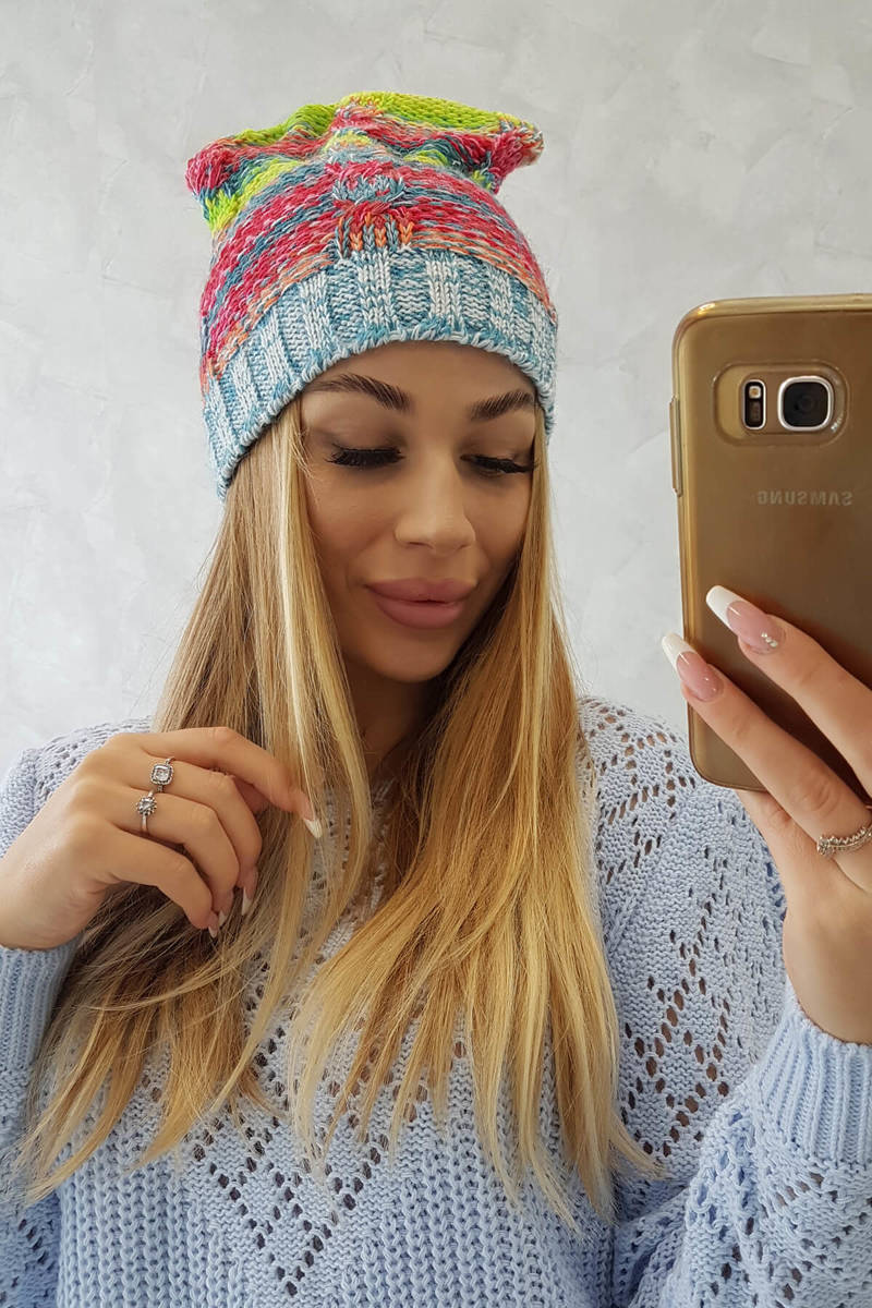 Czapka z polarem Klaudia K255 pomarańczowy+czerwony
