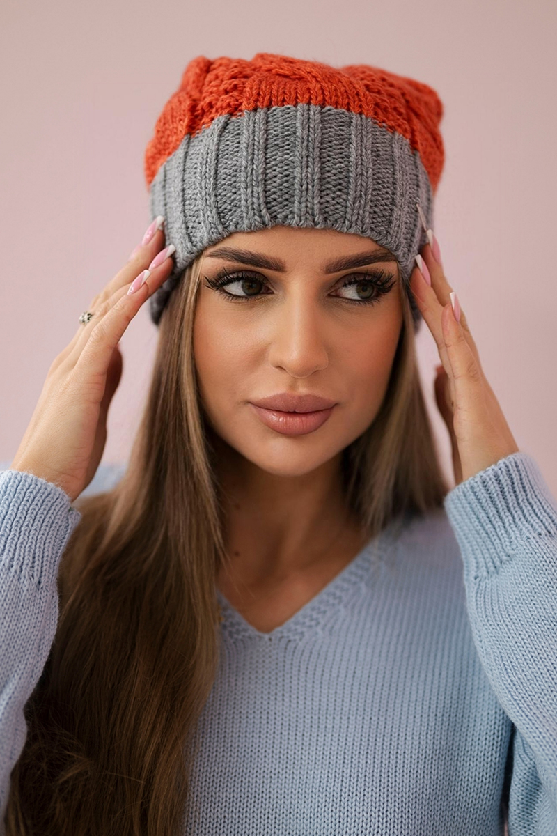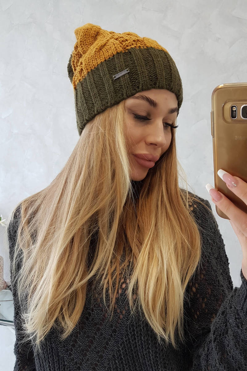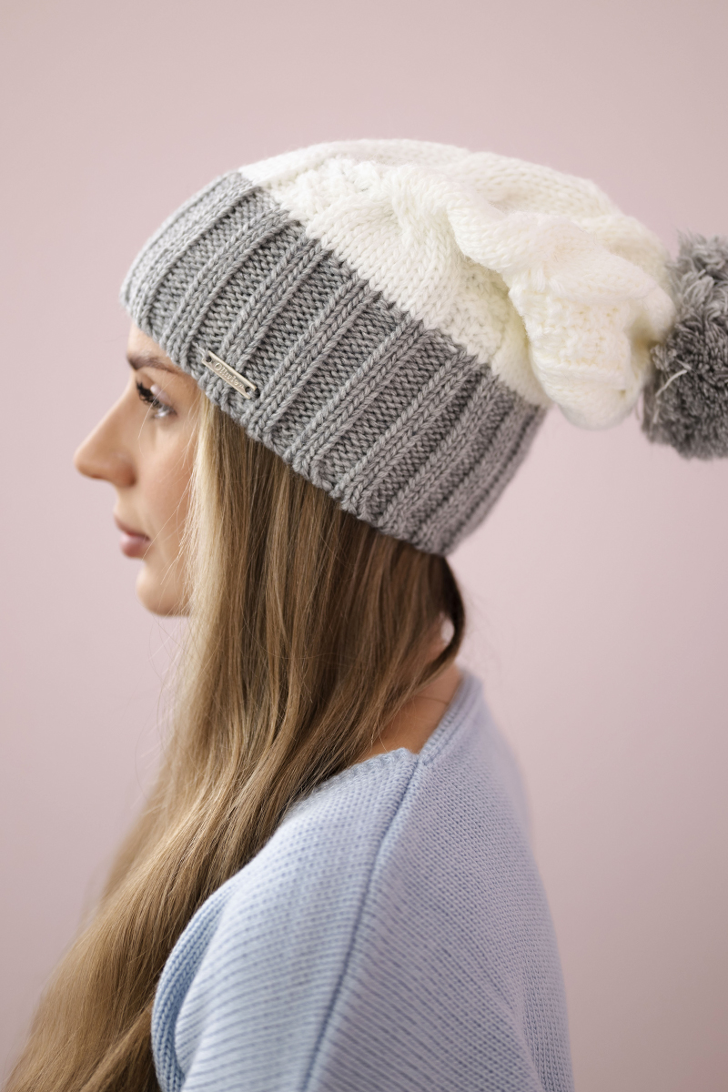 Czapka z polarem Paris K212 ciemny beżowy+beżowy