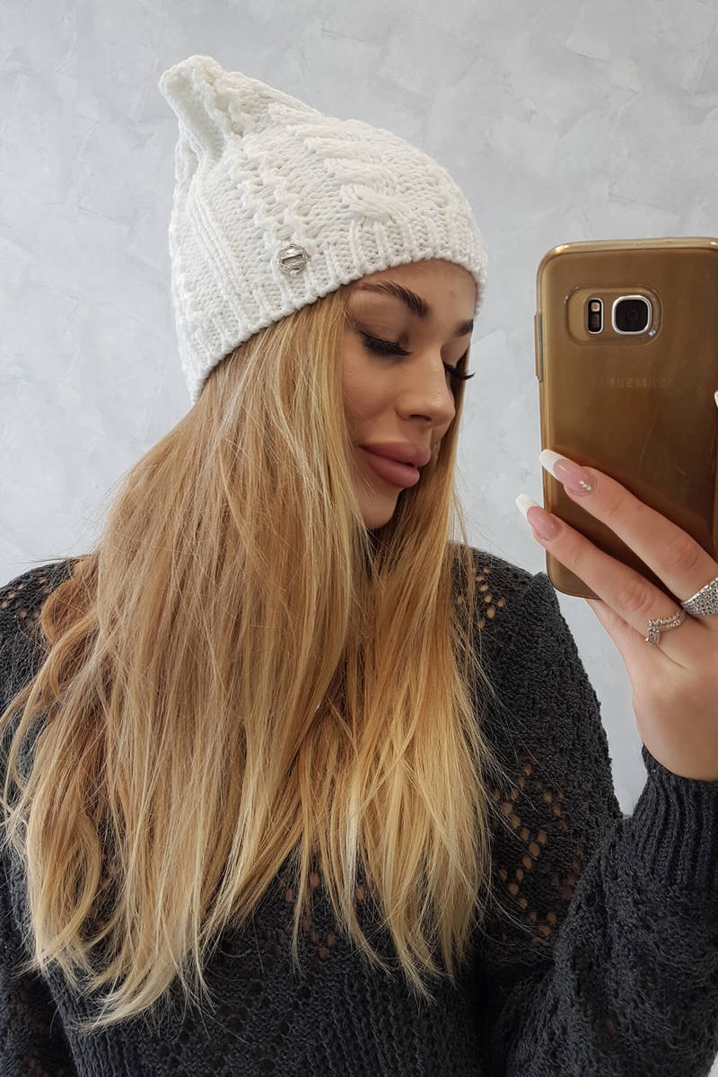 Czapka z polarem Ilona K218 fioletowy+biały
