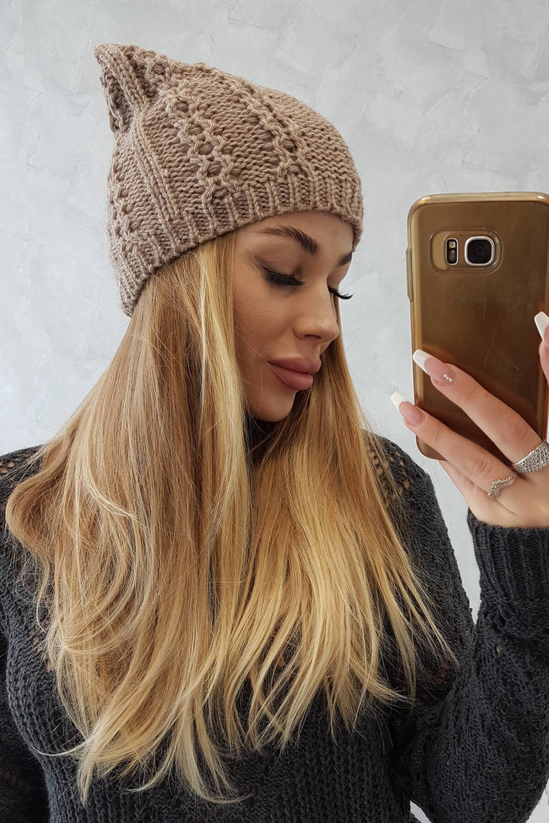 Czapka z moherem K223 khaki