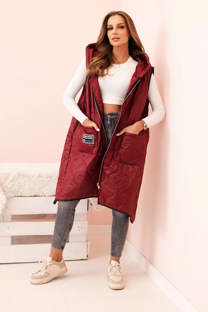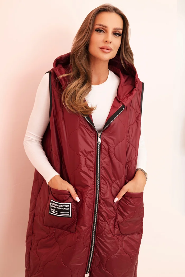 Kamizelka damska pikowana Plus Size z kapturem zapinana na zamek czarna