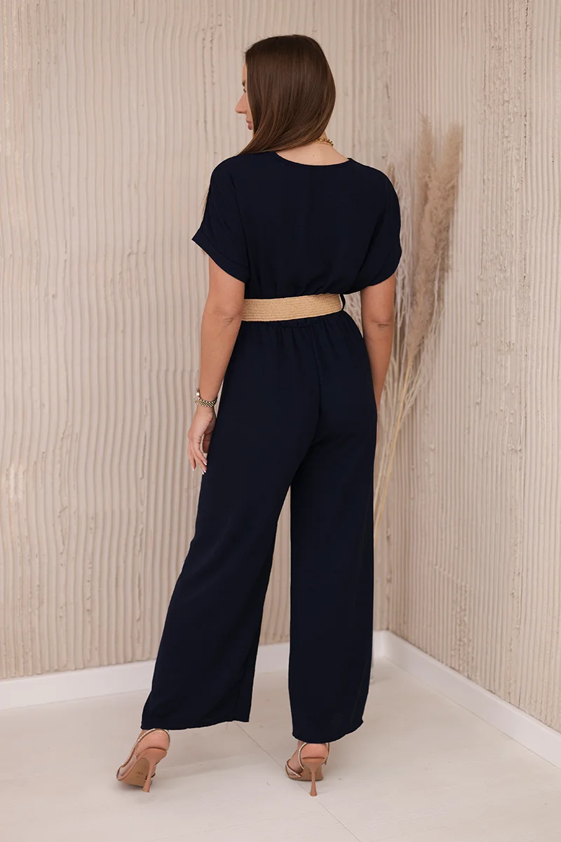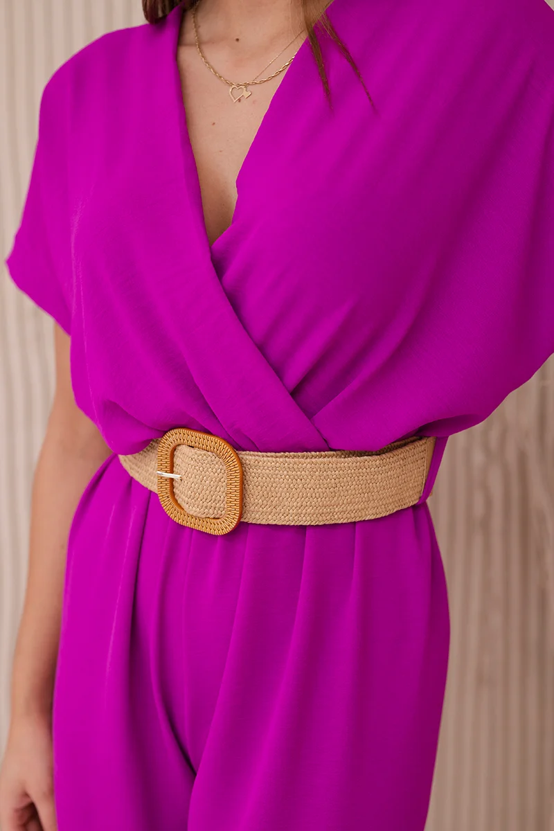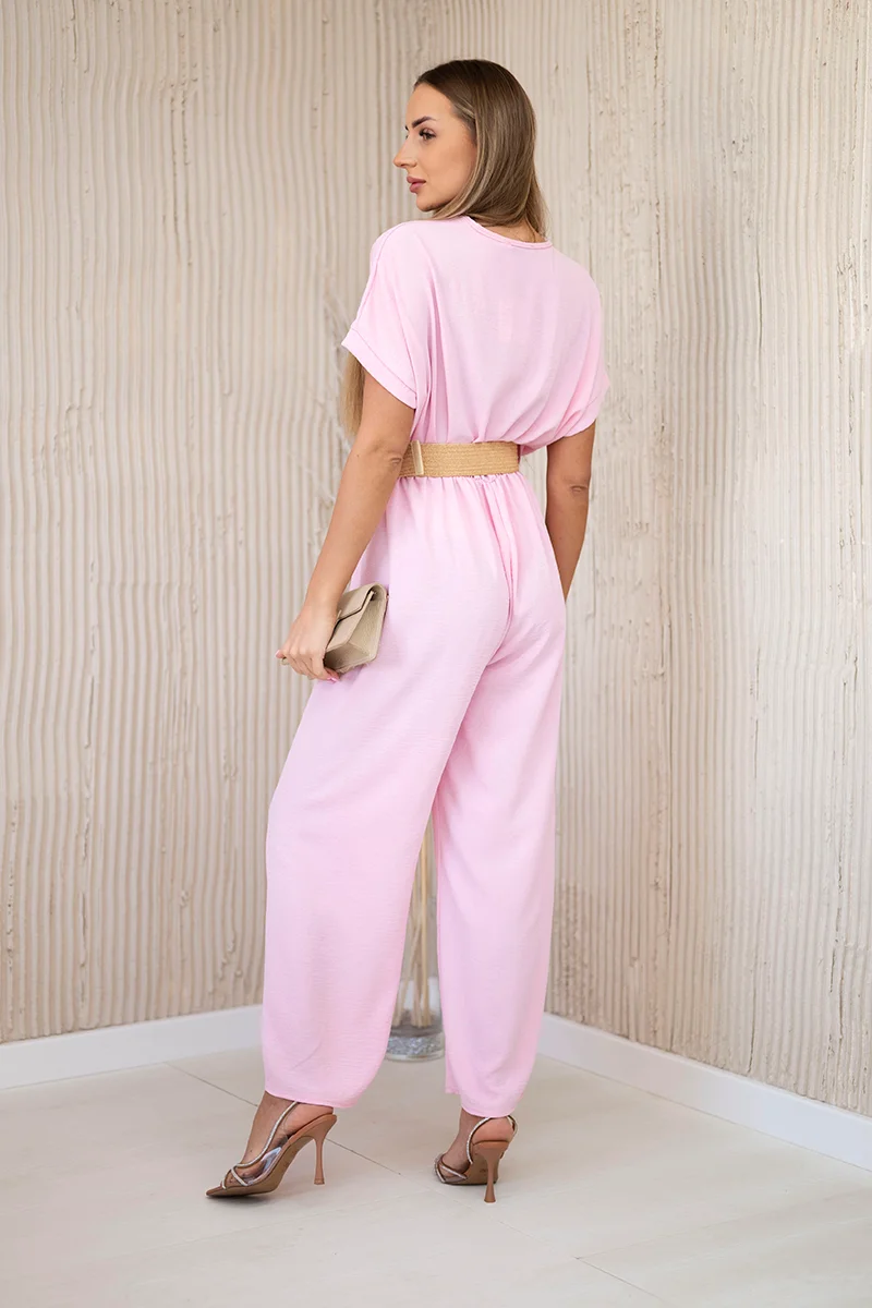 Kombinezon z ozdobnym paskiem w talii jasny zielony