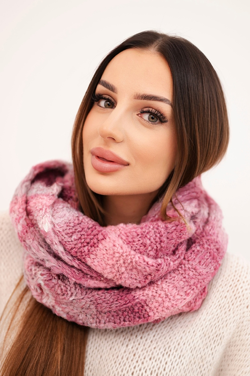 Komin damski wełniany melanżowy miękki otulacz na zimę KN20 ciemny różowy