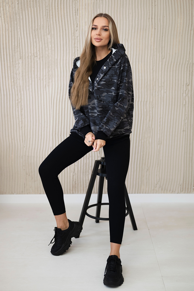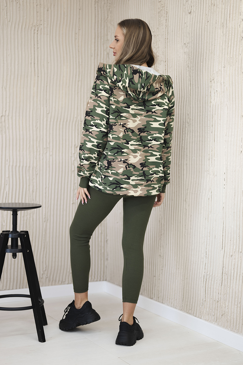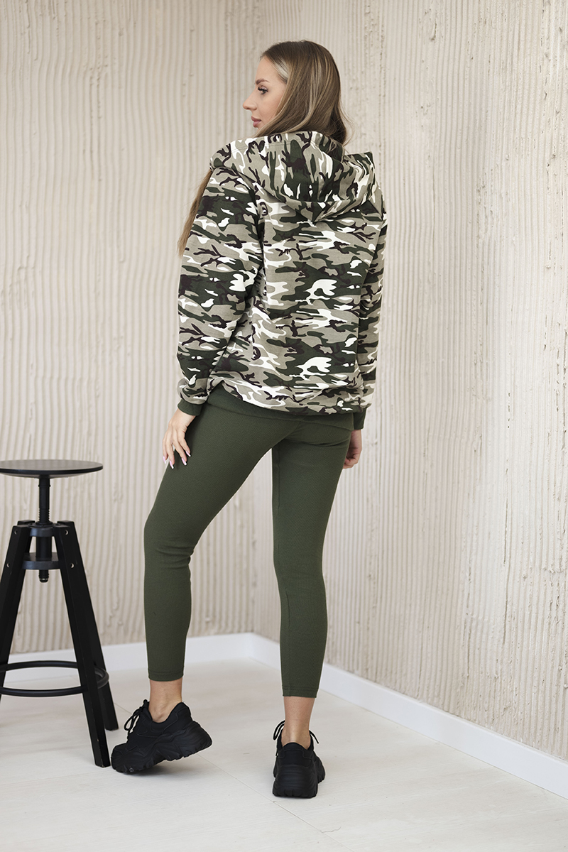Komplet 3-częściowy moro bluza, top i legginsy khaki + beżowy