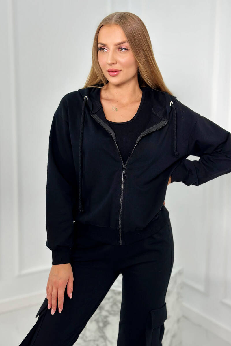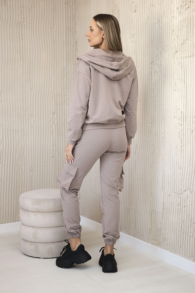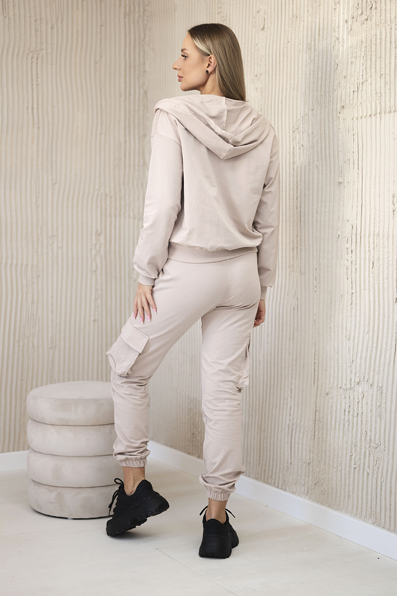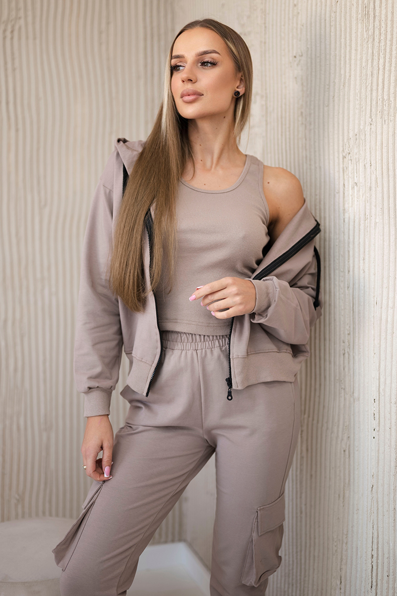 Komplet 3 w 1 bluza + top + spodnie jasny beżowy