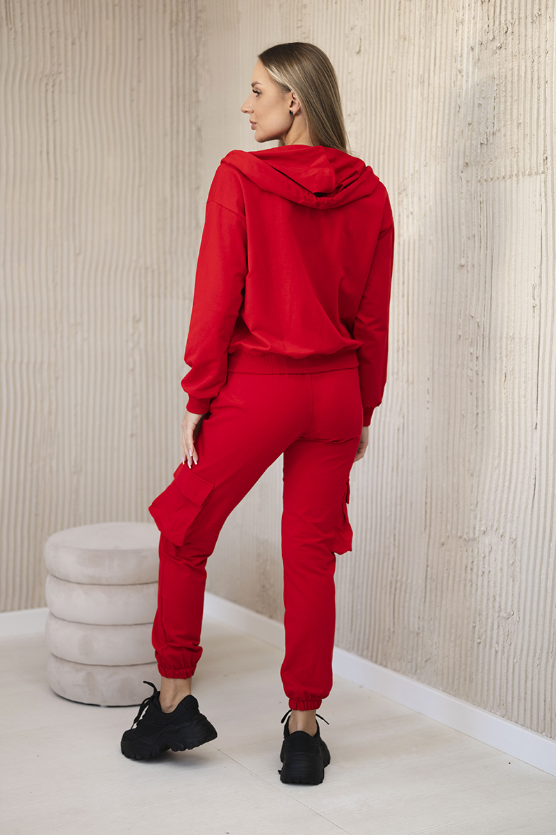 Komplet bawełniany bluza ocieplana + legginsy czerwony