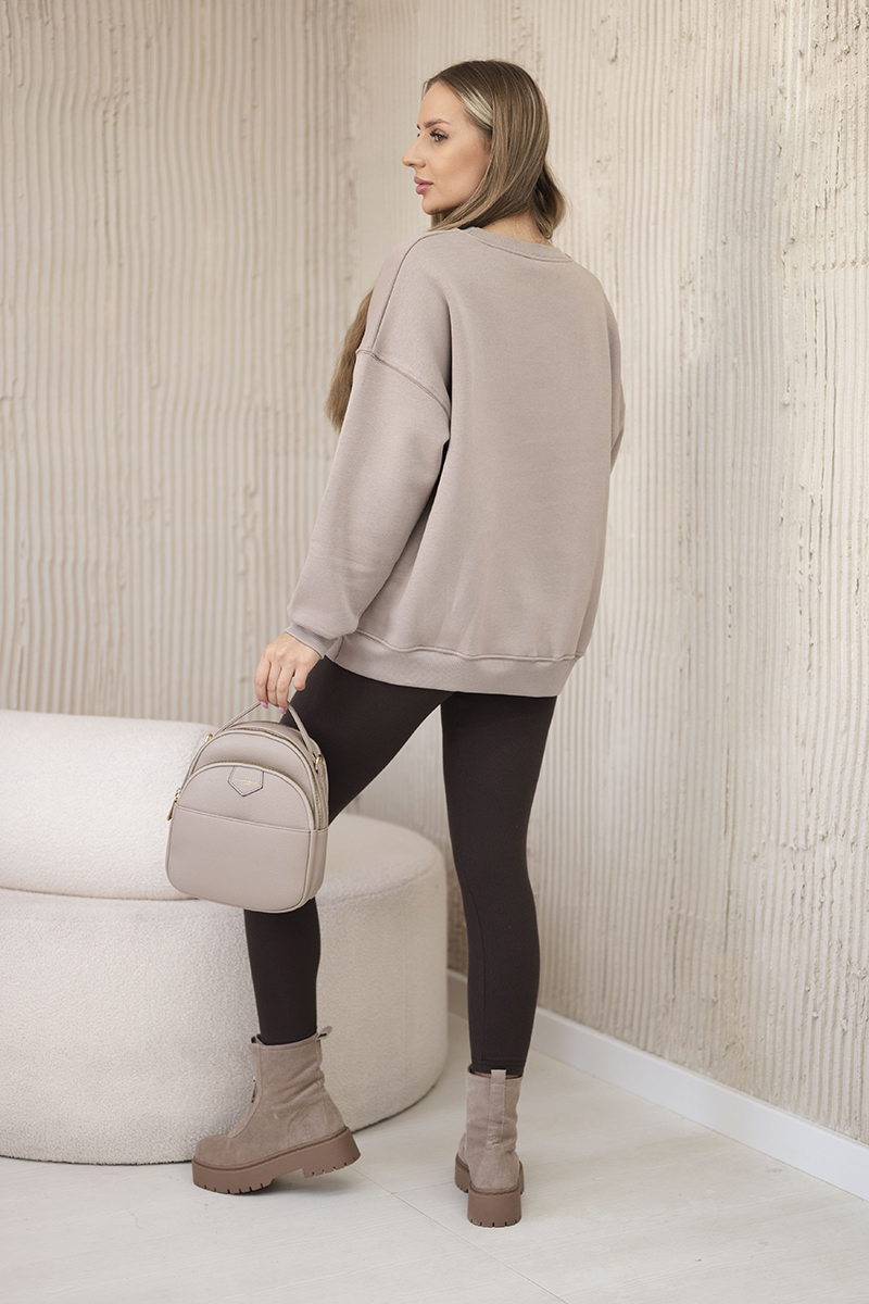 Komplet 3-częściowy moro bluza, top i legginsy khaki + beżowy