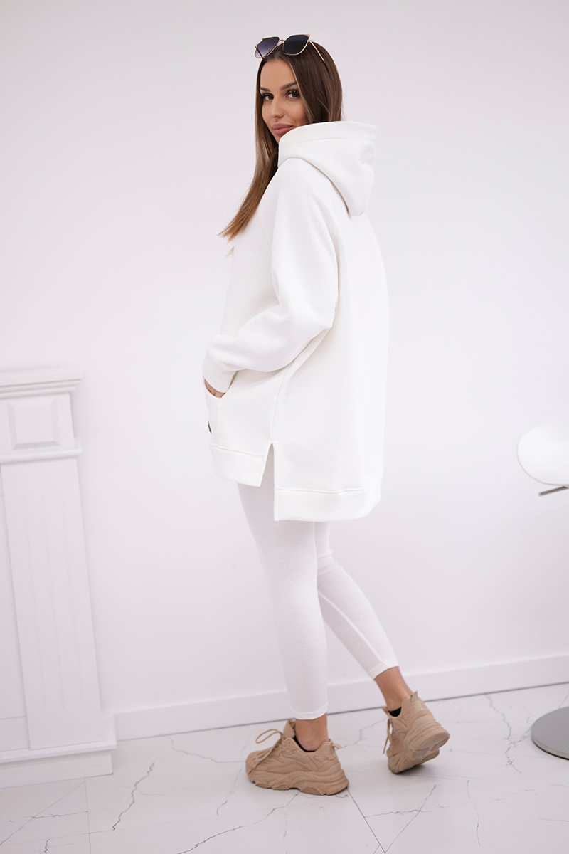 Komplet bawełniany ocieplany bluza z haftem + spodnie ecru