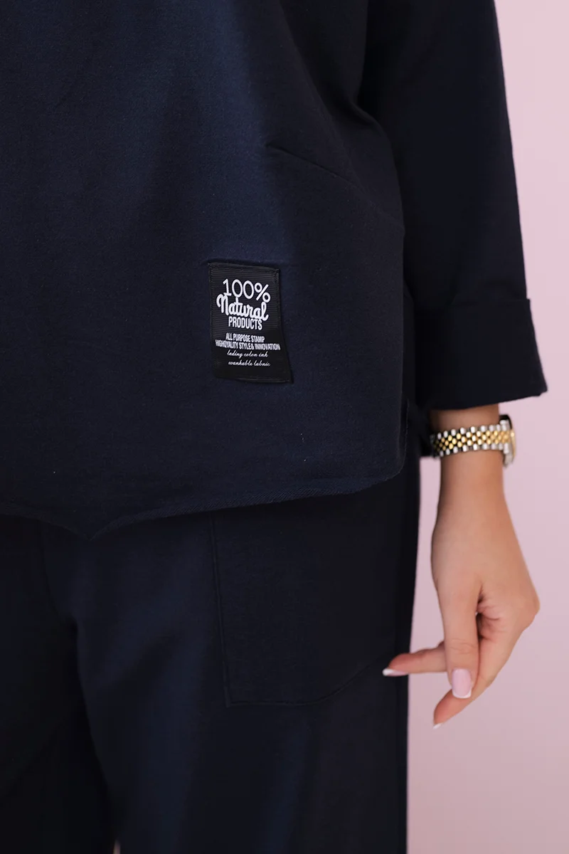 Bluza ocieplana ze ściągaczem i ozdobnymi kokardami granatowa
