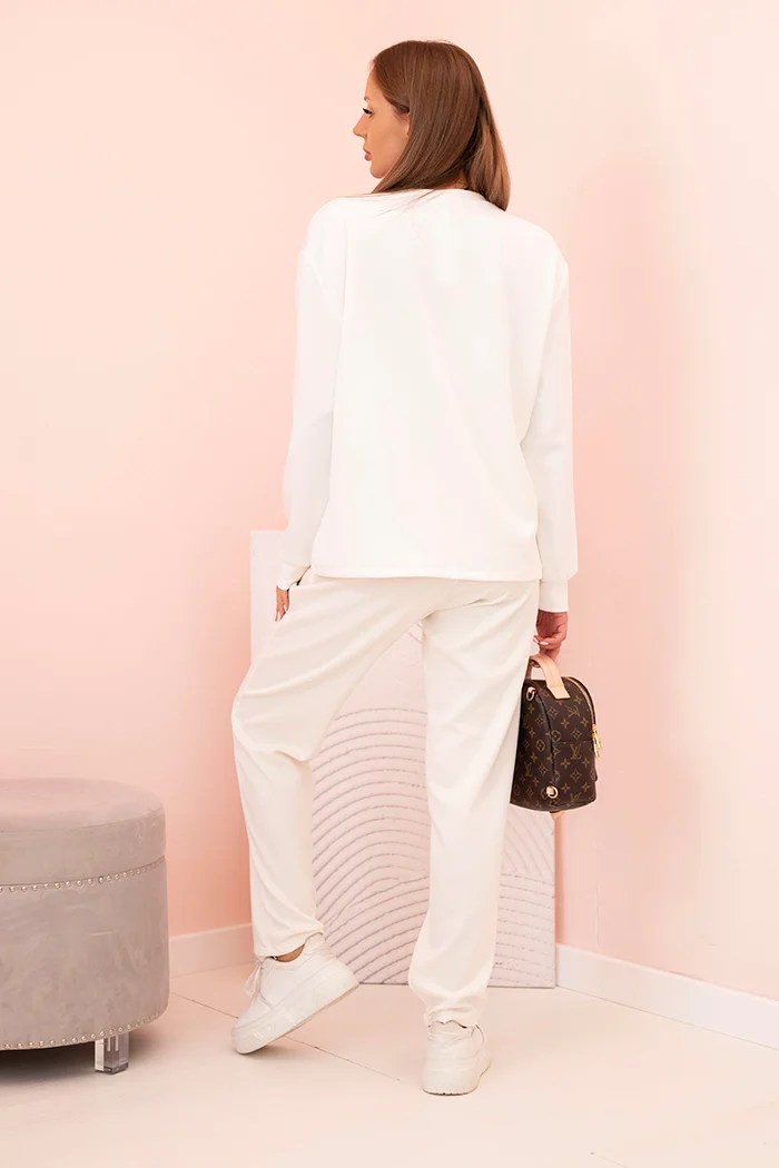 Komplet damska masełkowy bluza z kapturem i spodniami z paskiem beżowy