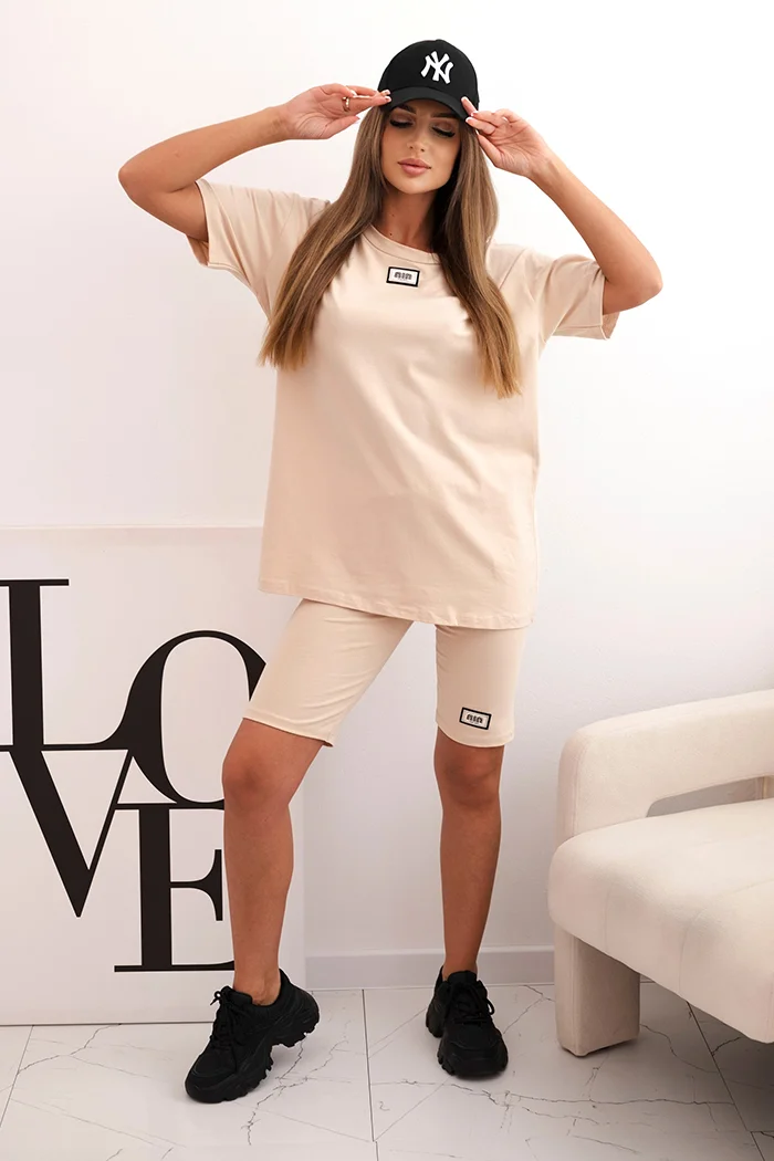 Komplet damski masełko z krótkim rękawem i spodniami żółty