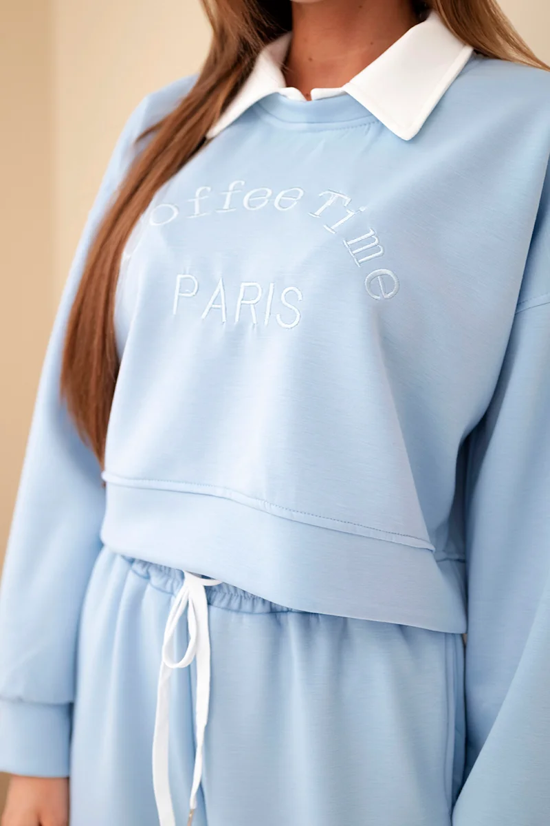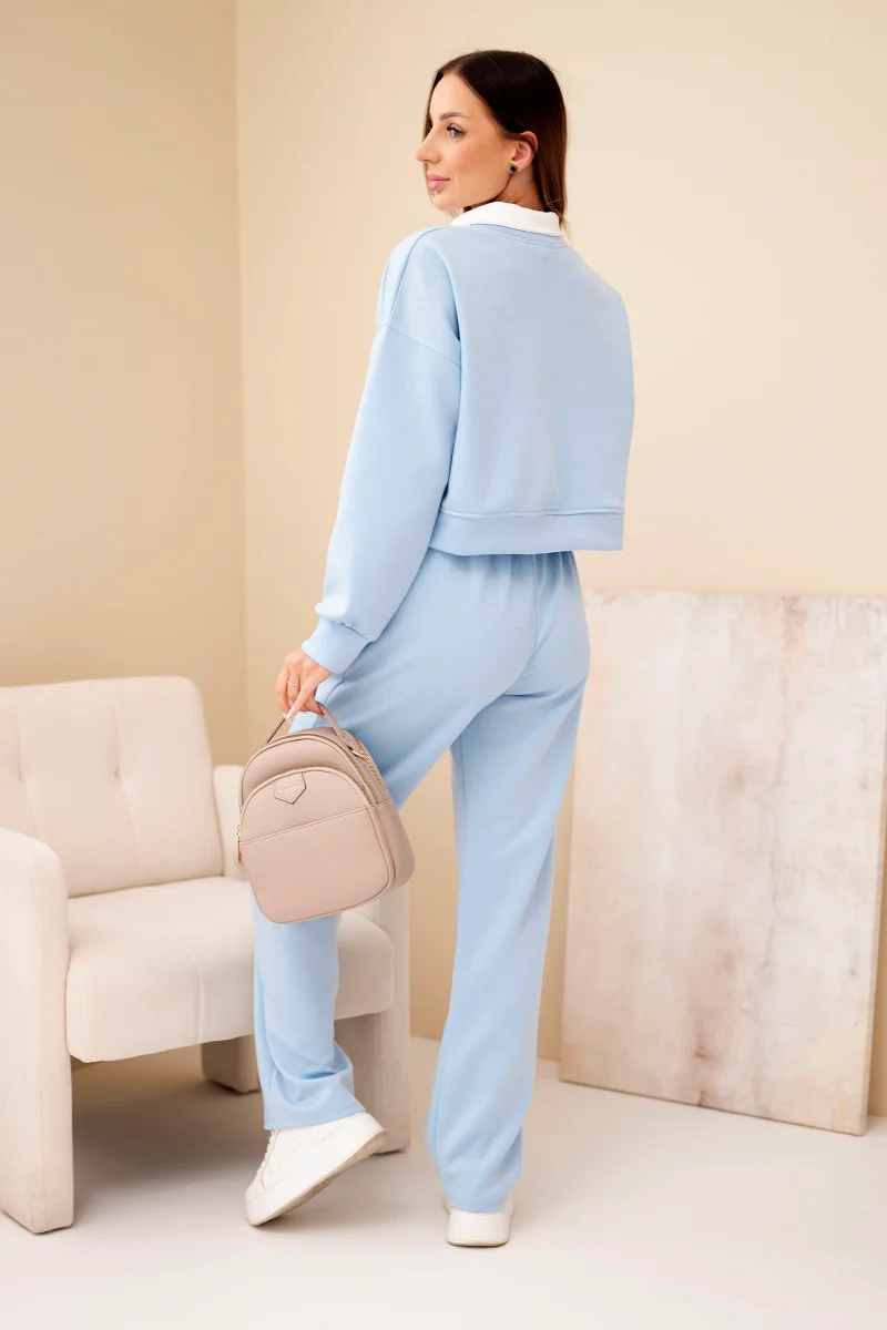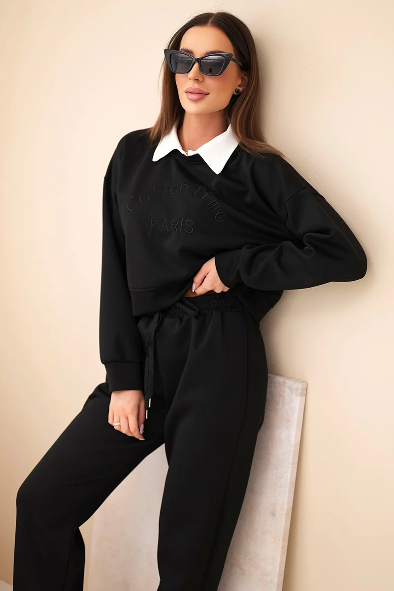 Komplet damski masełko bluza z kołnierzykiem i proste spodnie czarny