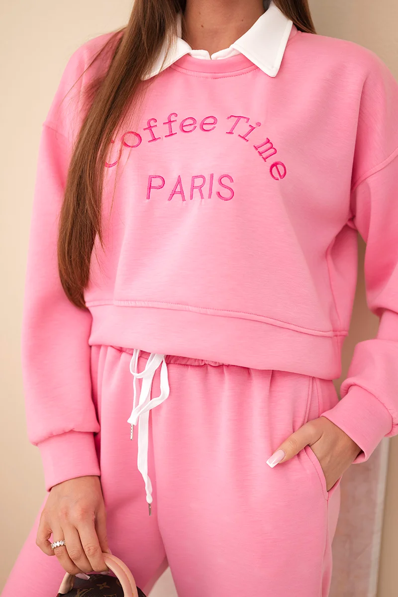 Komplet damski masełko bluza z broszką i spodnie z prostą nogawką fango