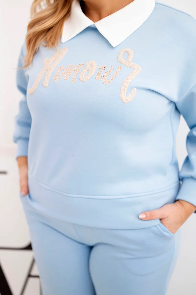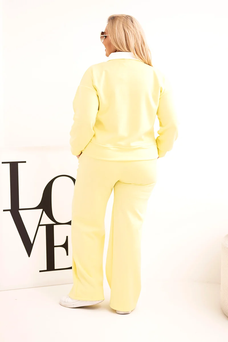 Komplet damski masełko Plus Size z szerokimi nogawkami i kołnierzykiem biały
