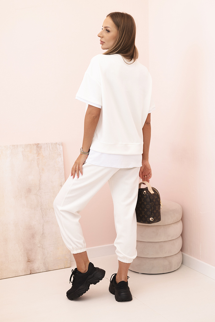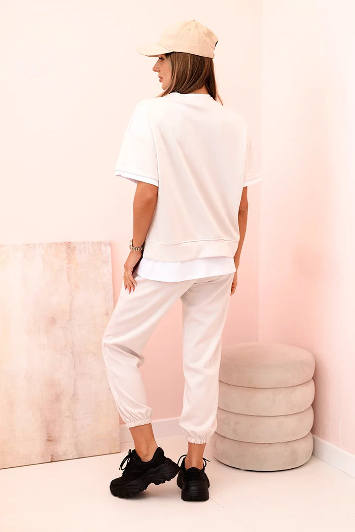 Komplet damski bawełniany z krótkim rękawem i szortami biały