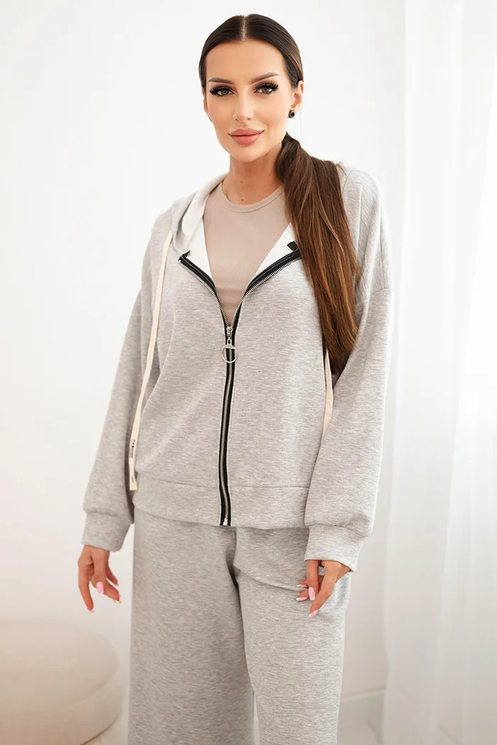 Komplet damski masełko z szeroką nogawką i bluzą na zamek czarny