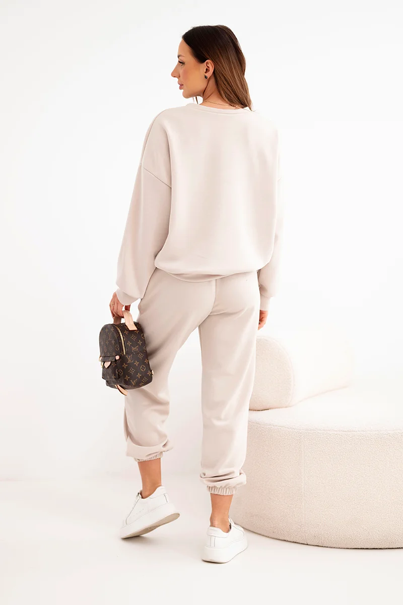 Komplet damski masełko z luźną bluzą i spodniami z szeroką nogawką camelowy