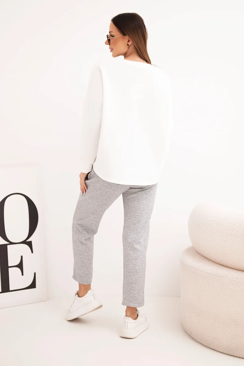 Komplet damski masełkowy z wiskozy z wiązaniami szary