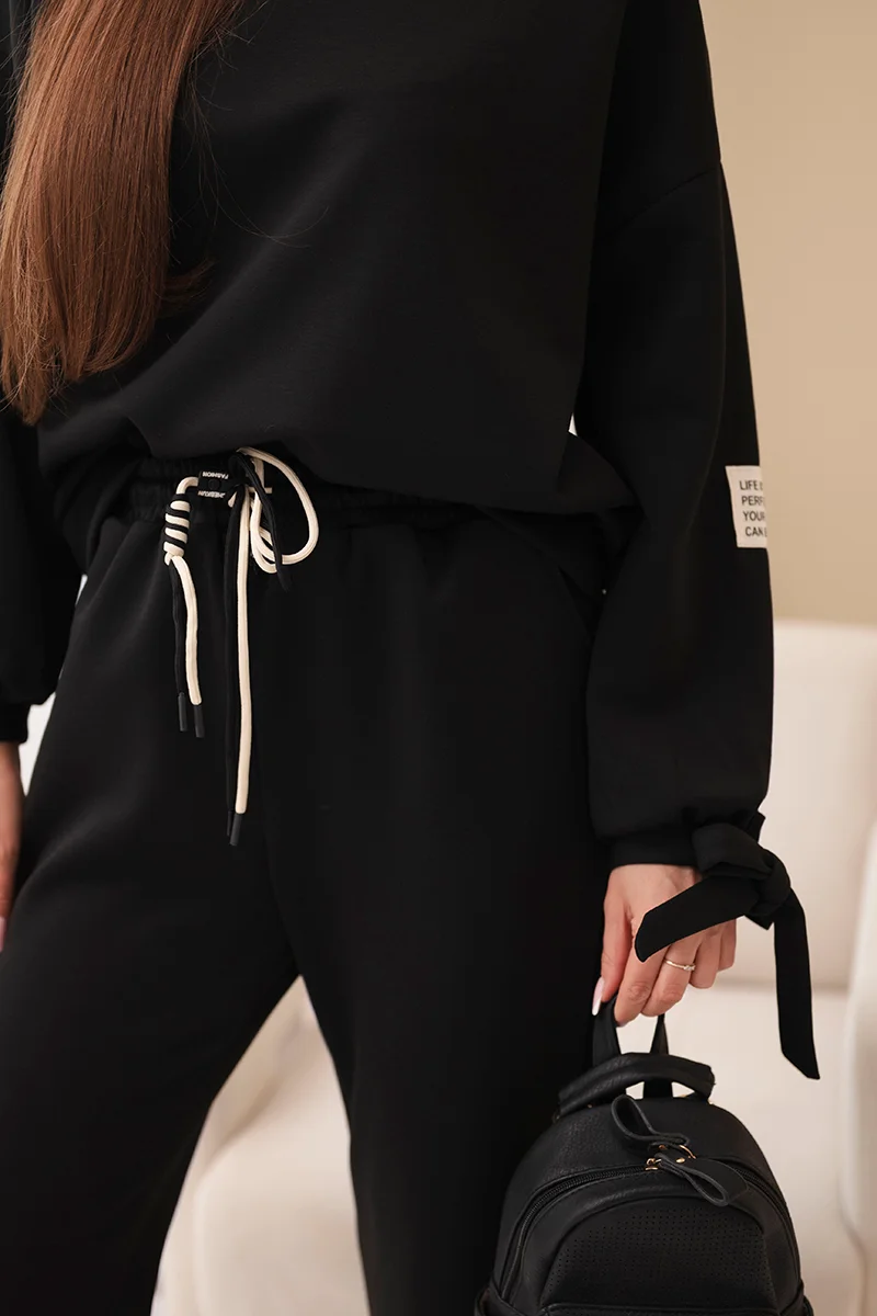 Komplet damski masełkowy z kontrastową kieszonką czarny