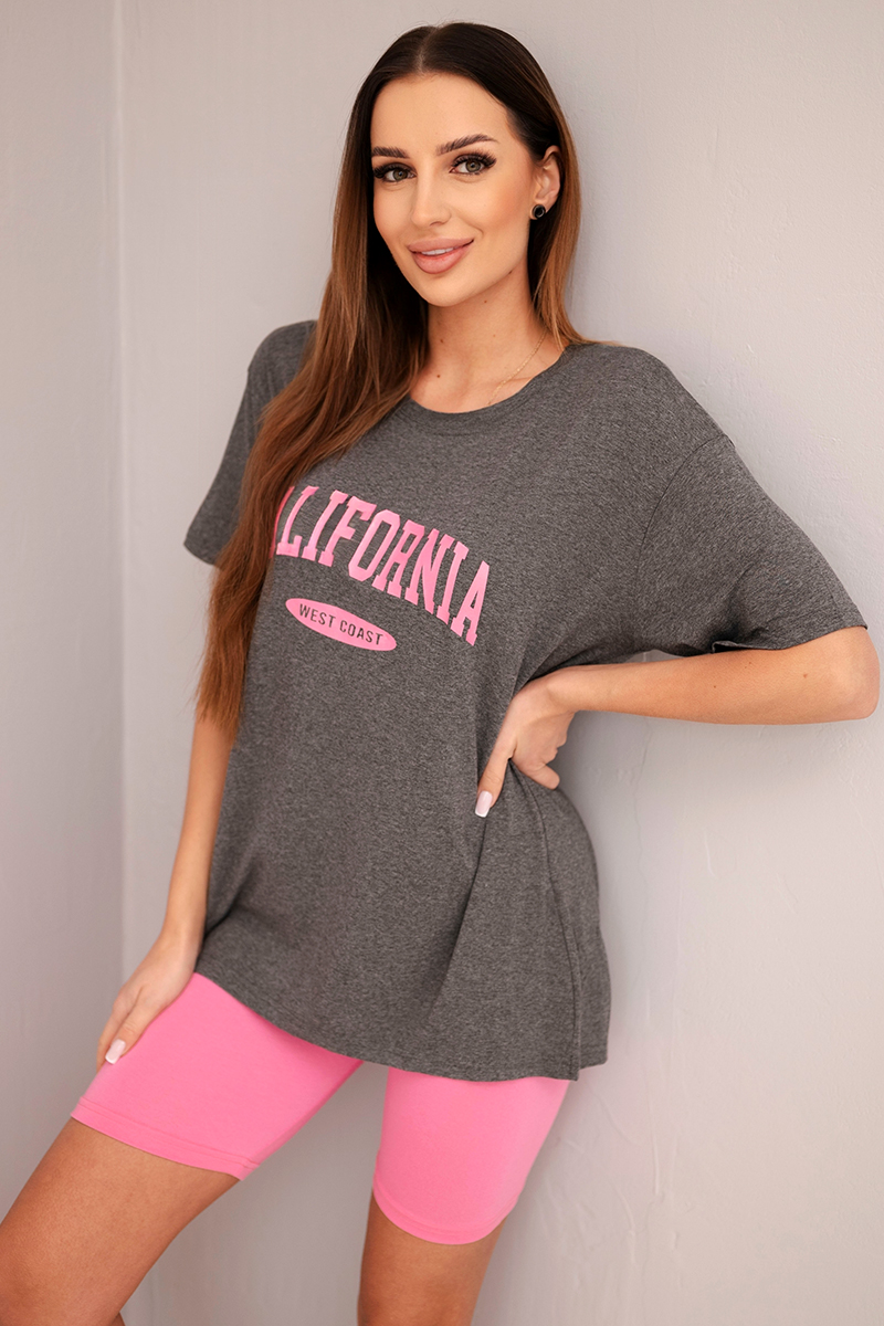 Komplet damski z luźną bluzką i dopasowanymi spodenkami ecru + brązowy