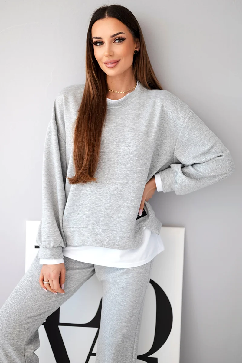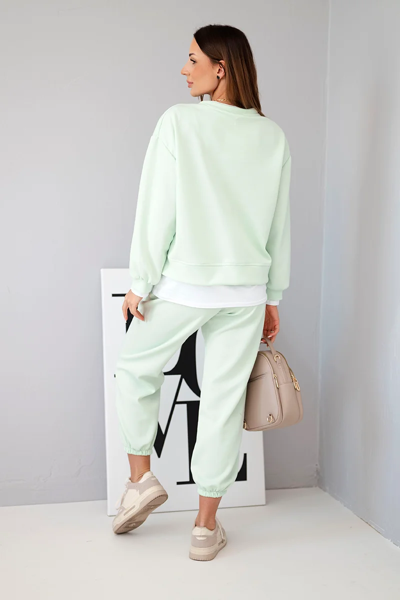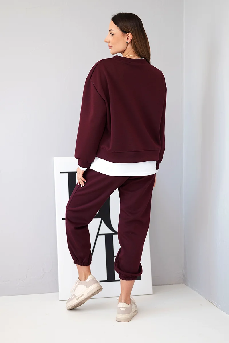 Komplet damski z masełkowy z luźną bluzą i spodniami dresowymi brązowy