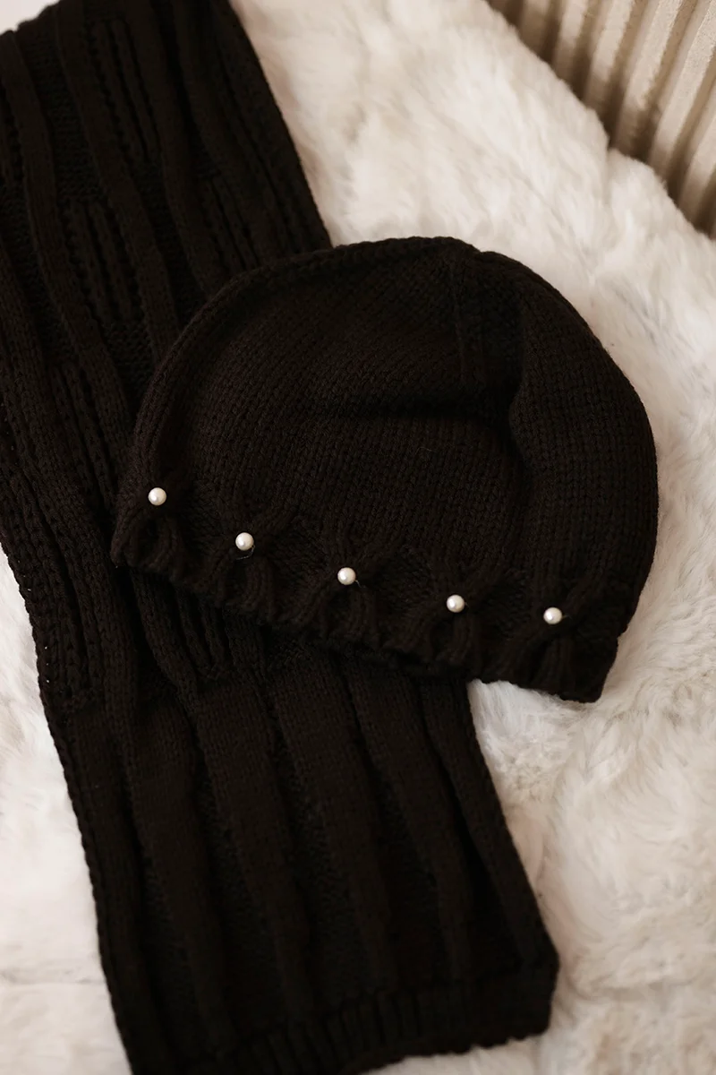 Komplet damski z szalem Melania K389 brązowy