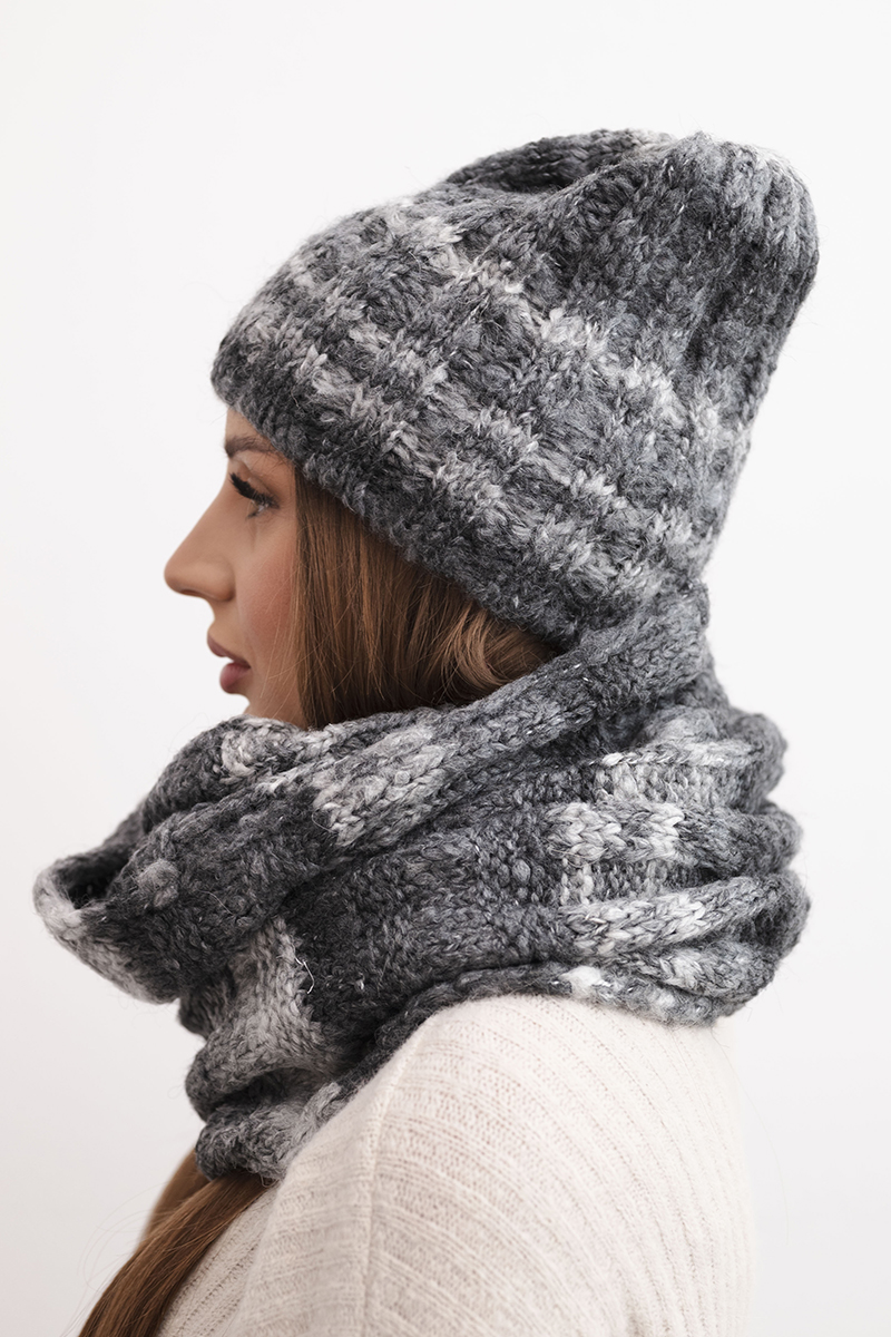 Czapka damska zimowa klasyczna z subtelnym wzorem K379 grafitowa