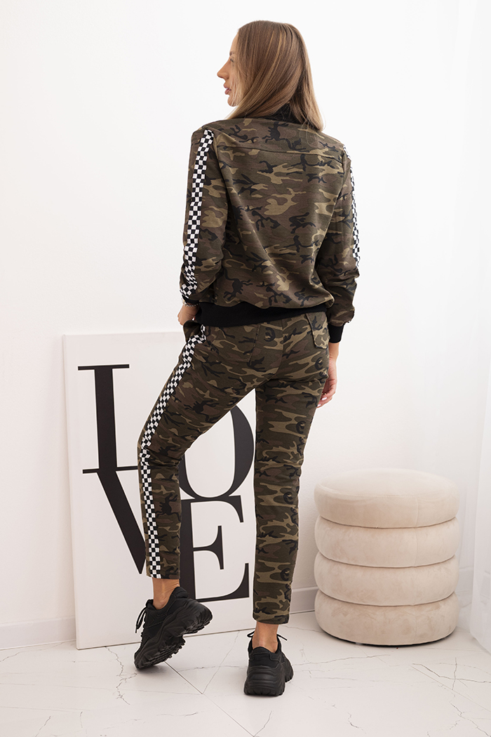 Komplet dresowy damski moro z bawełny z zamkiem i ściągaczami khaki+czarny