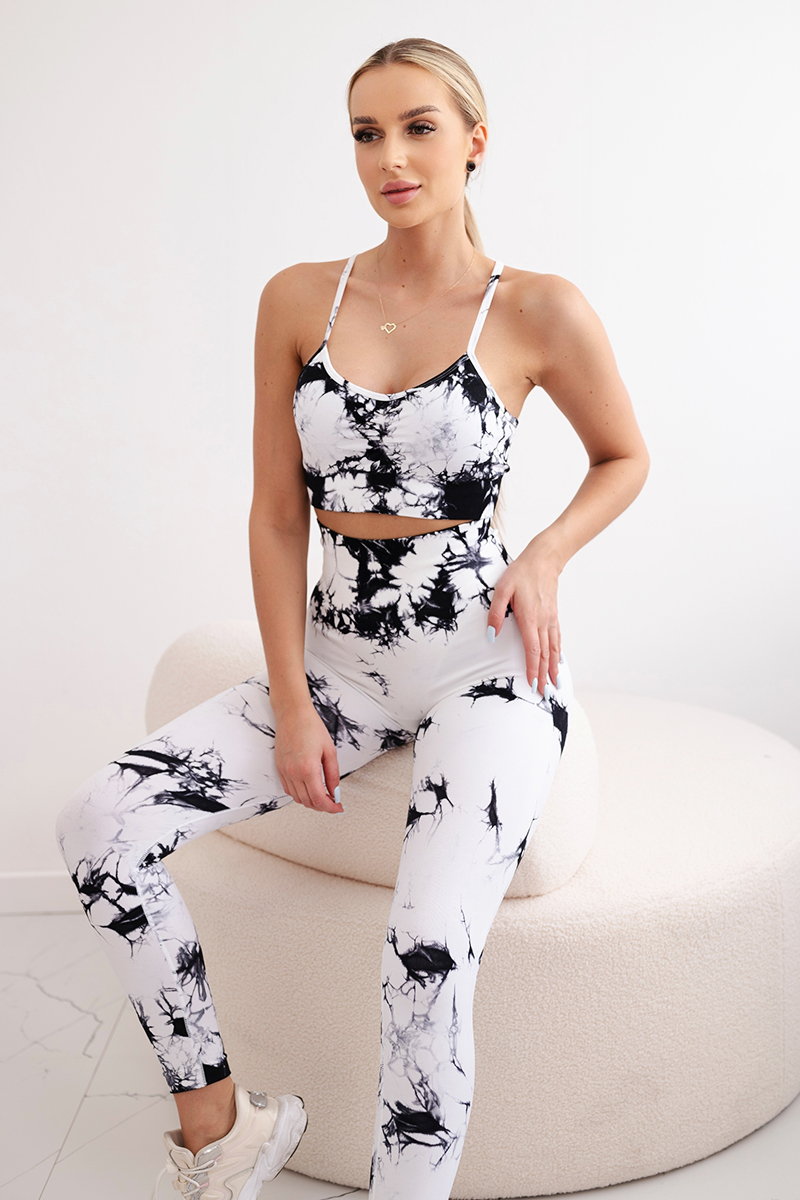 Komplet fitness top z regulowanymi ramiączkami + legginsy push up biały