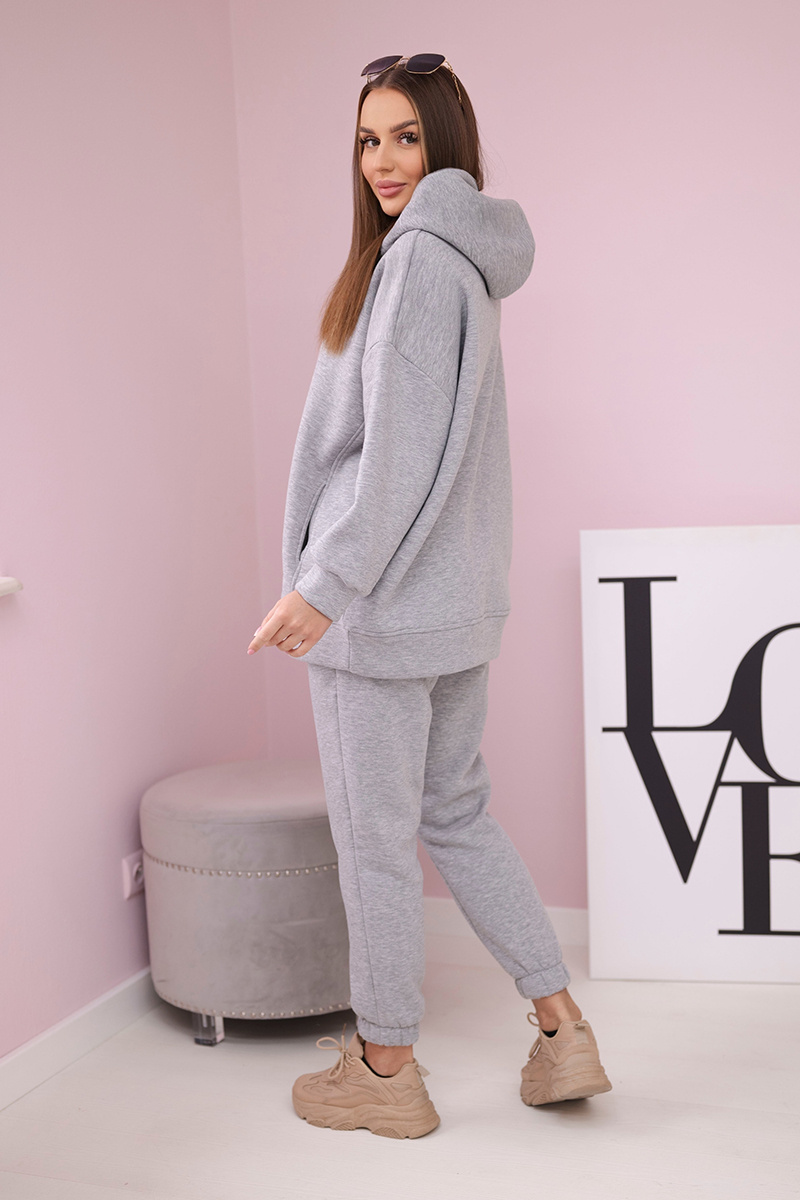 Komplet ocieplany z bluzą z kapturem szary