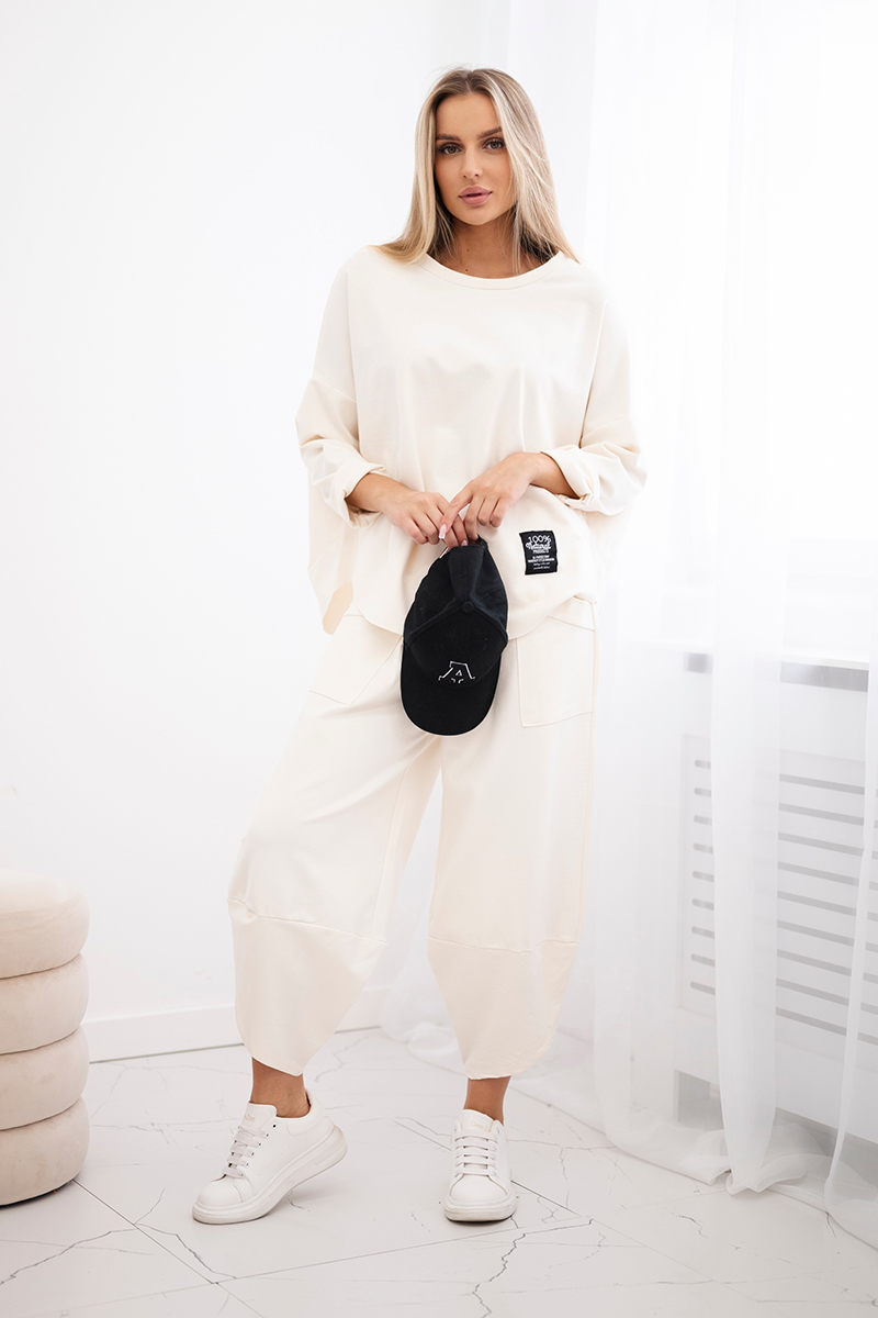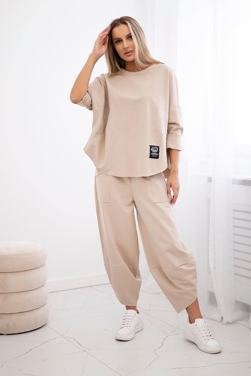 Komplet Punto Milano Winter bluza z kapturem + spodnie beżowy