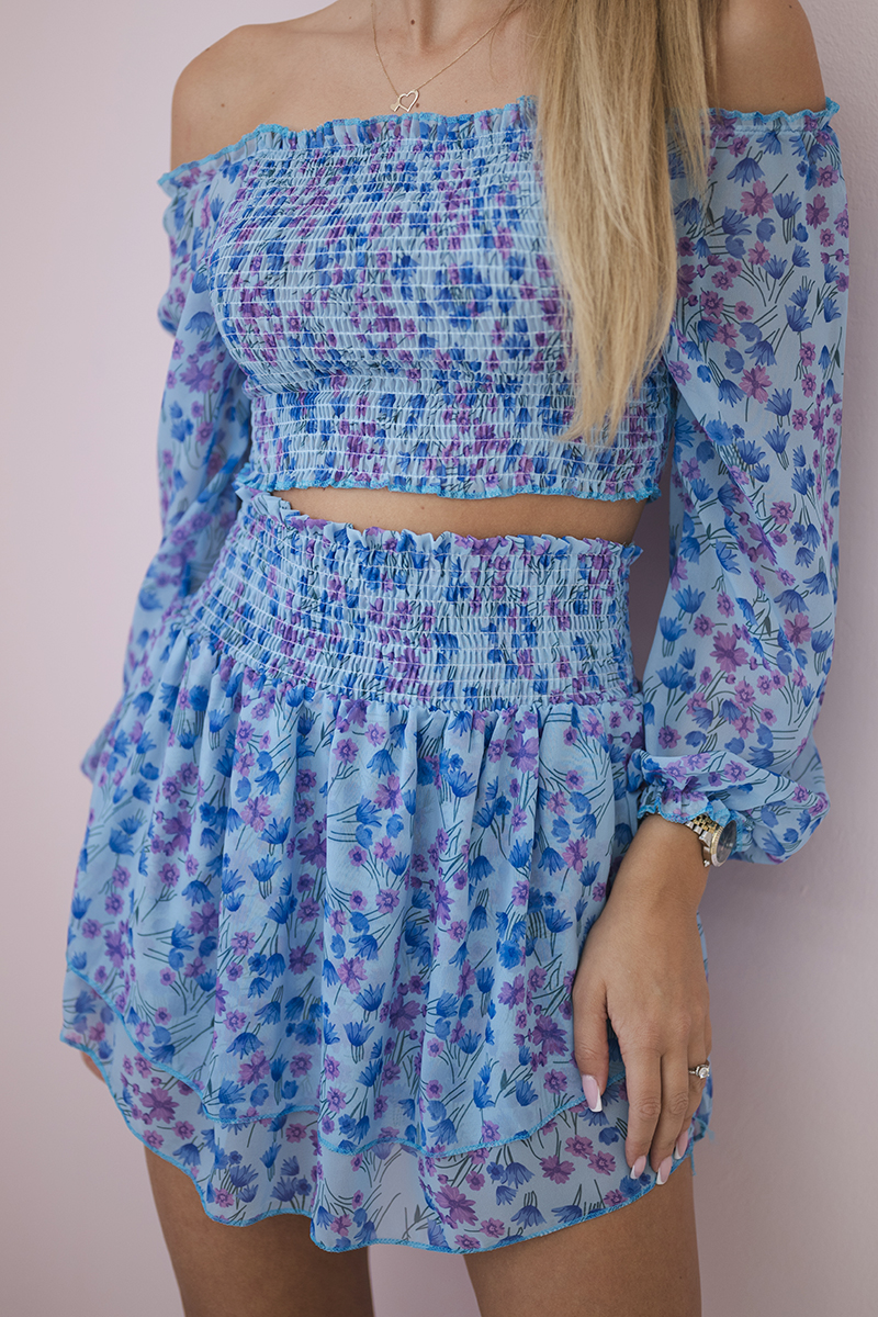 Sukienka w kwiaty wiązana w talii pudrowy róż