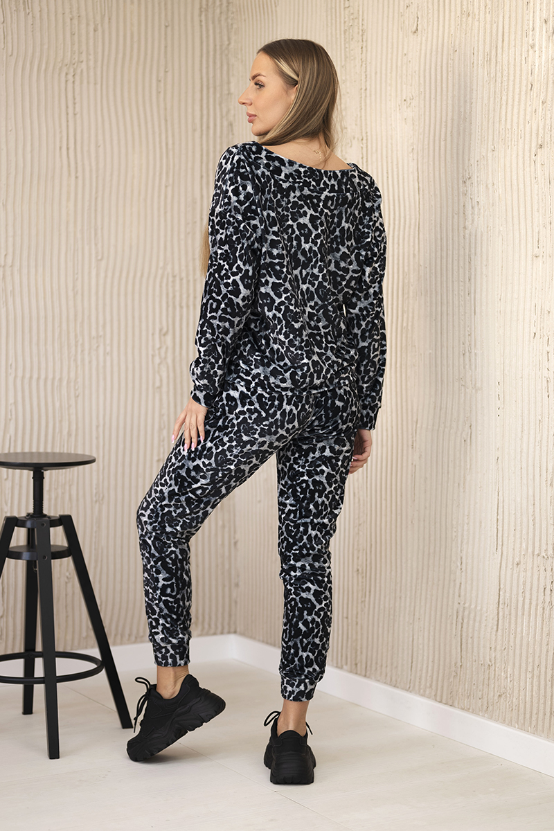 Komplet welurowy w panterkę czarny