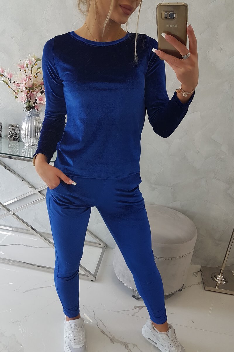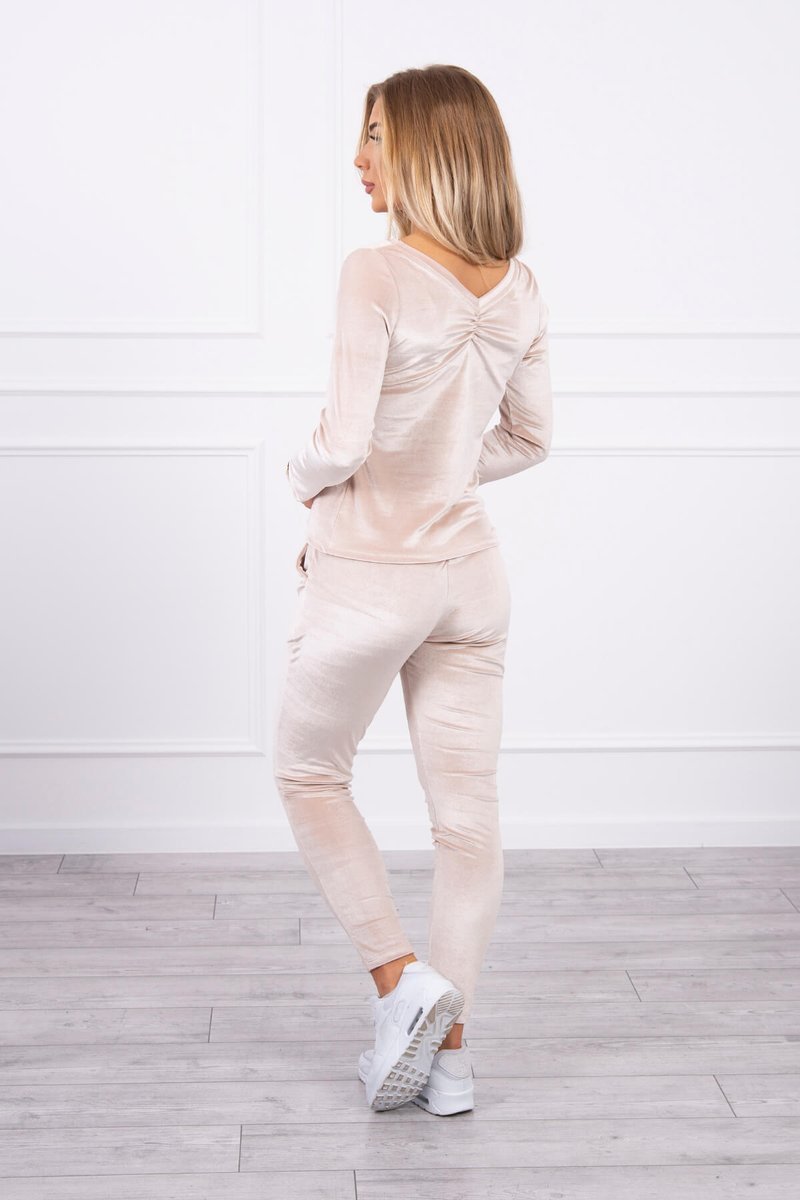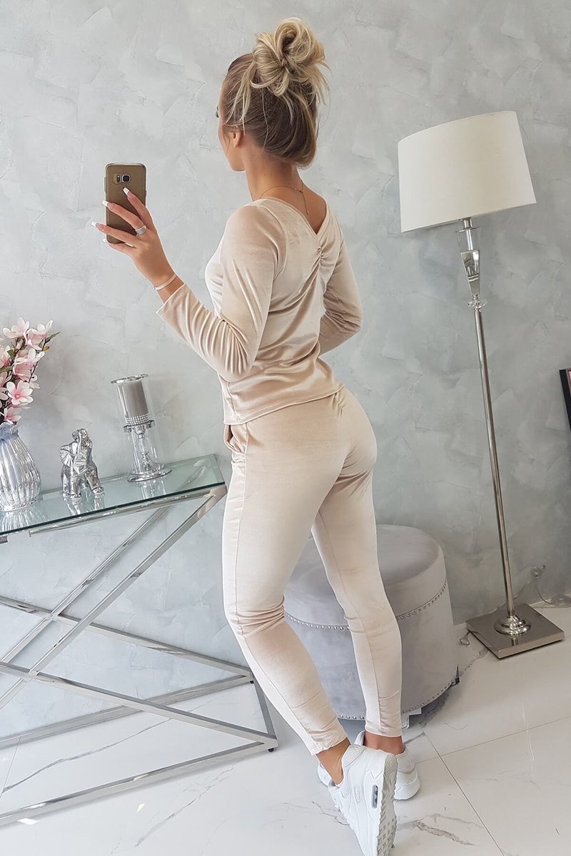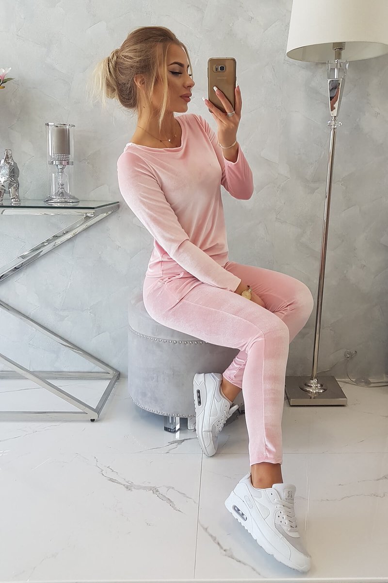 Komplet welurowy z marszczeniem z tyłu pudrowy róż