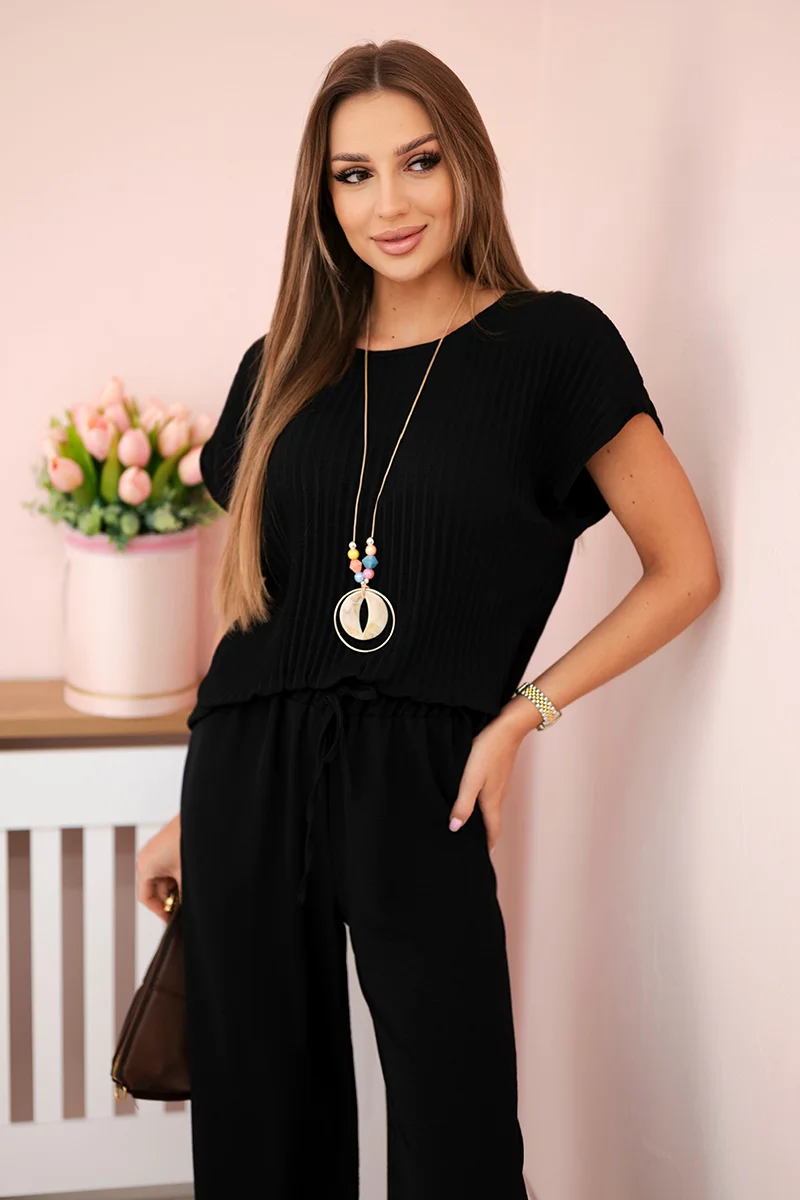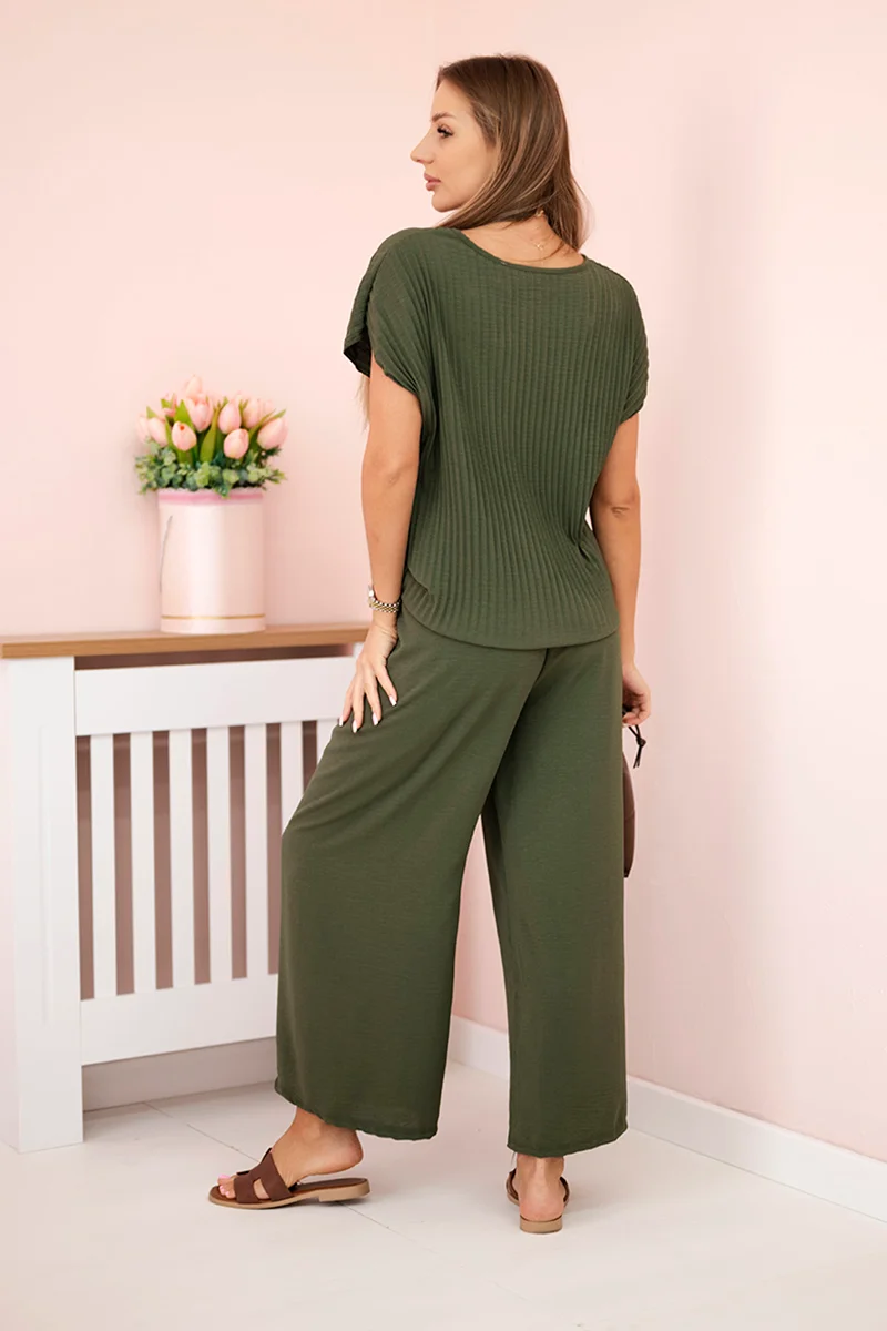 Komplet z wiskozy bluzka plisowana + spodnie khaki