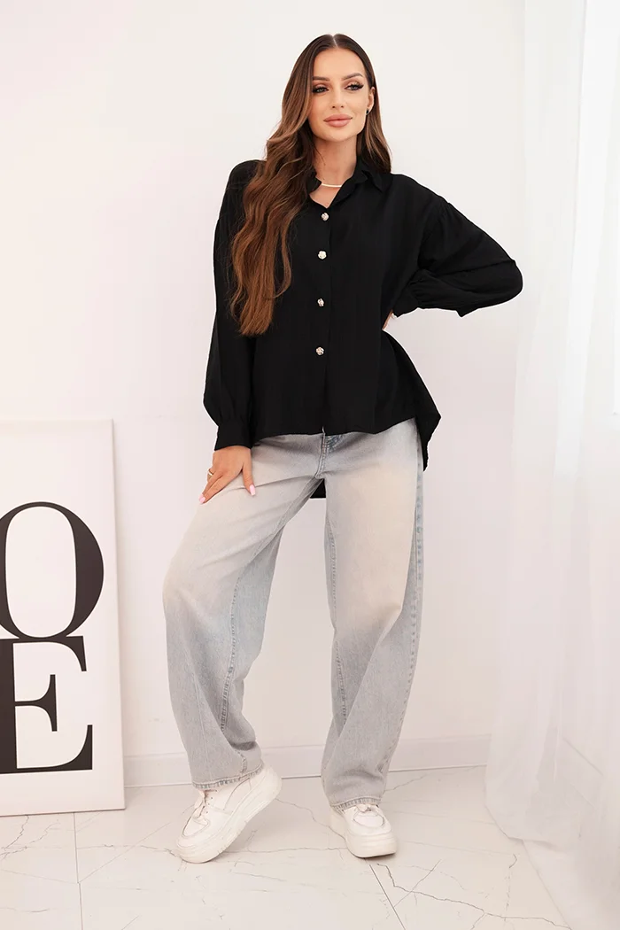 Koszula damska elegancka z wiskozy z ozdobnymi guzikami czarna