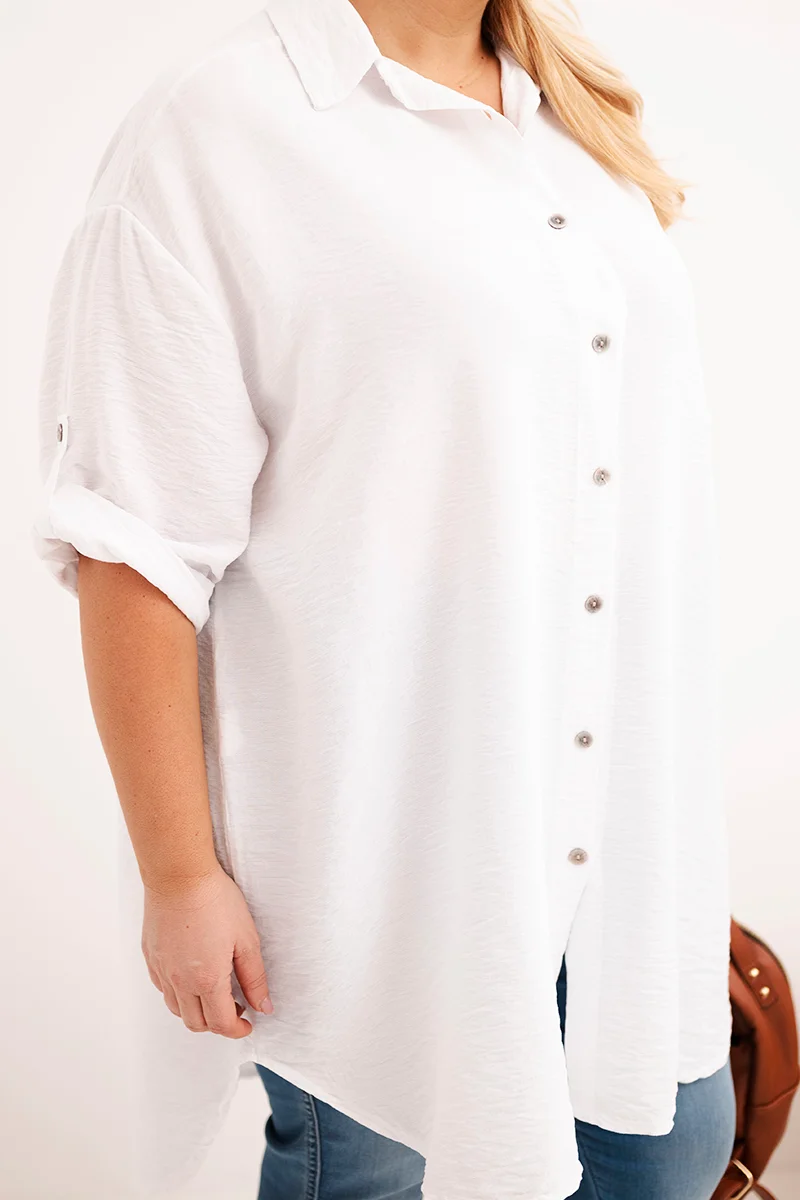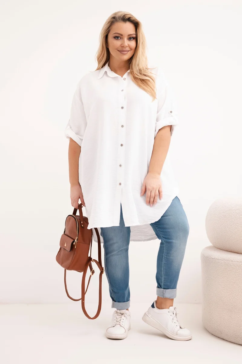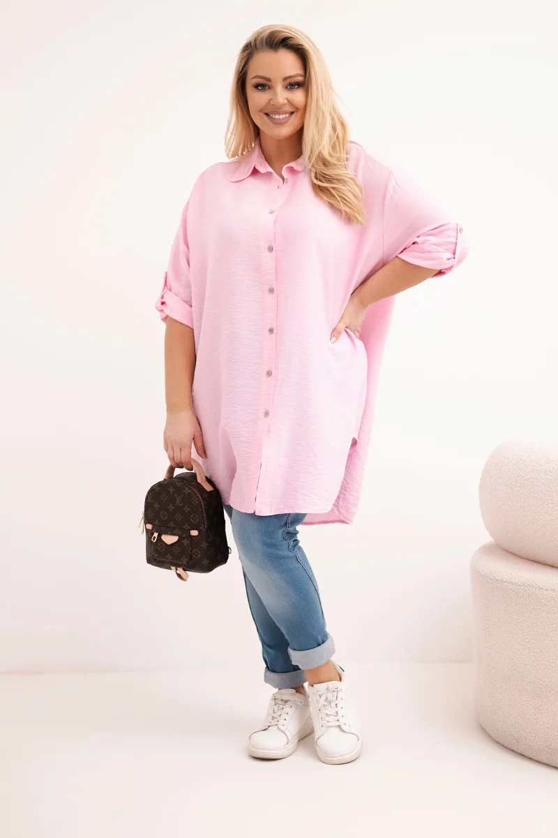 Koszula damska Plus Size z wiskozy z dłuższym tyłem cukierkowy róż