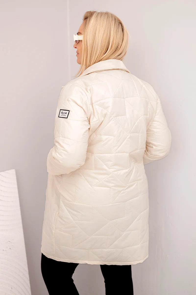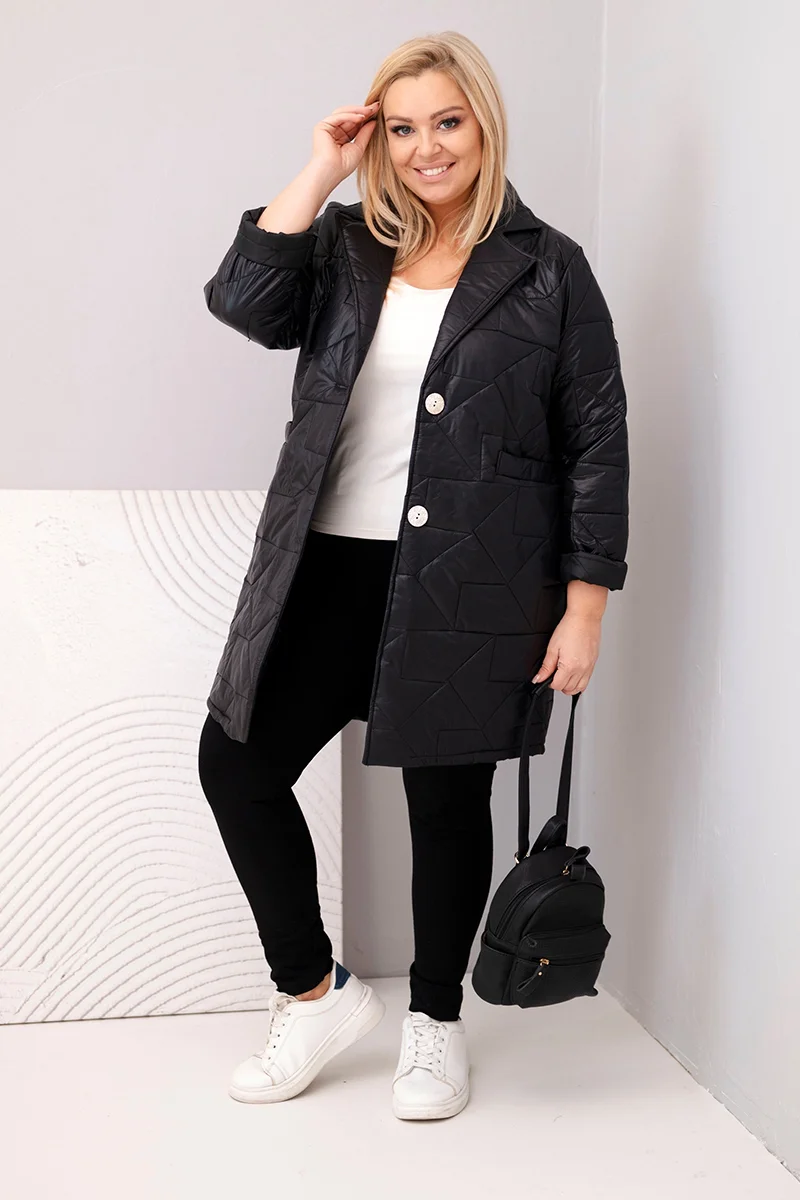 Kurtka damska Plus Size pikowana z ozdobnymi guzikami i kołnierzem czarna