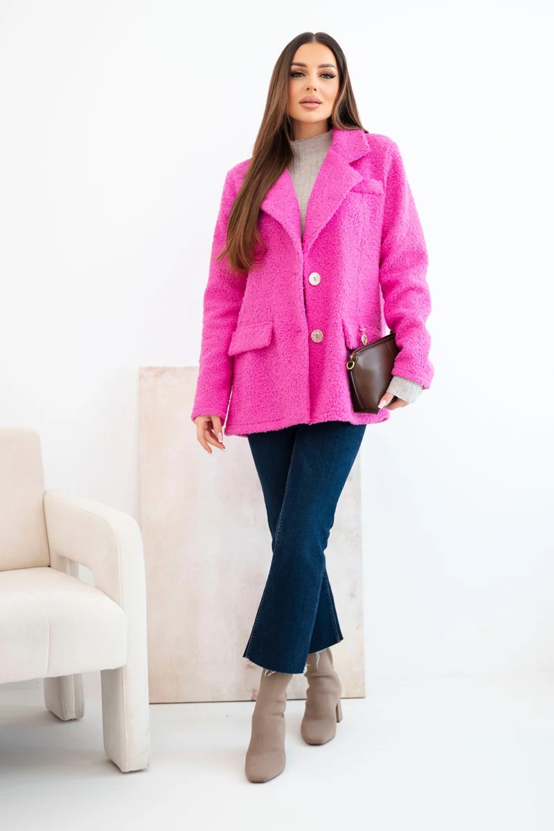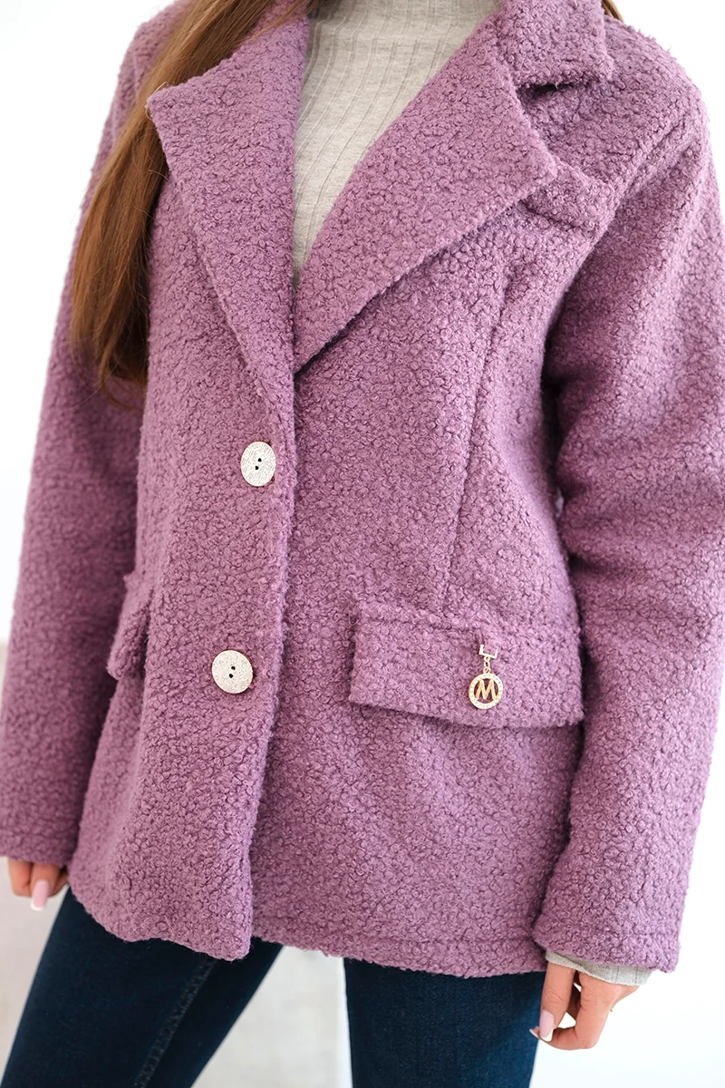 Kurtka damska z miękkiego baranka z kołnierzem różowa