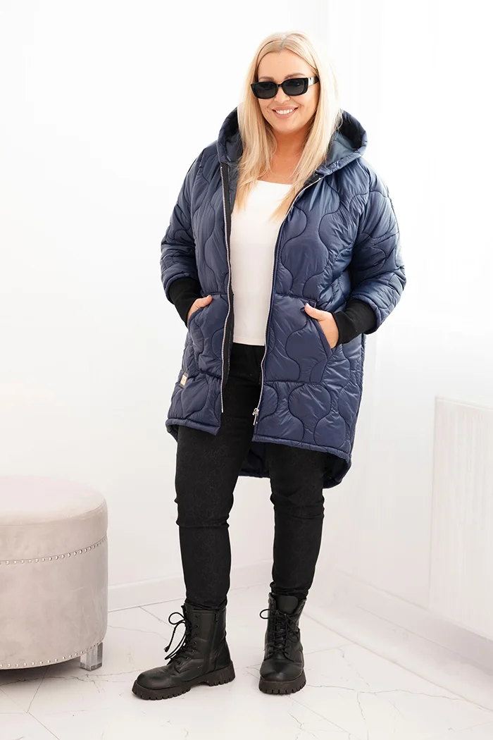 Kurtka damska zimowa Plus Size pikowana z kapturem khaki