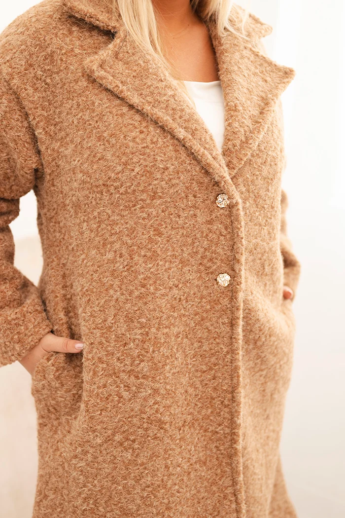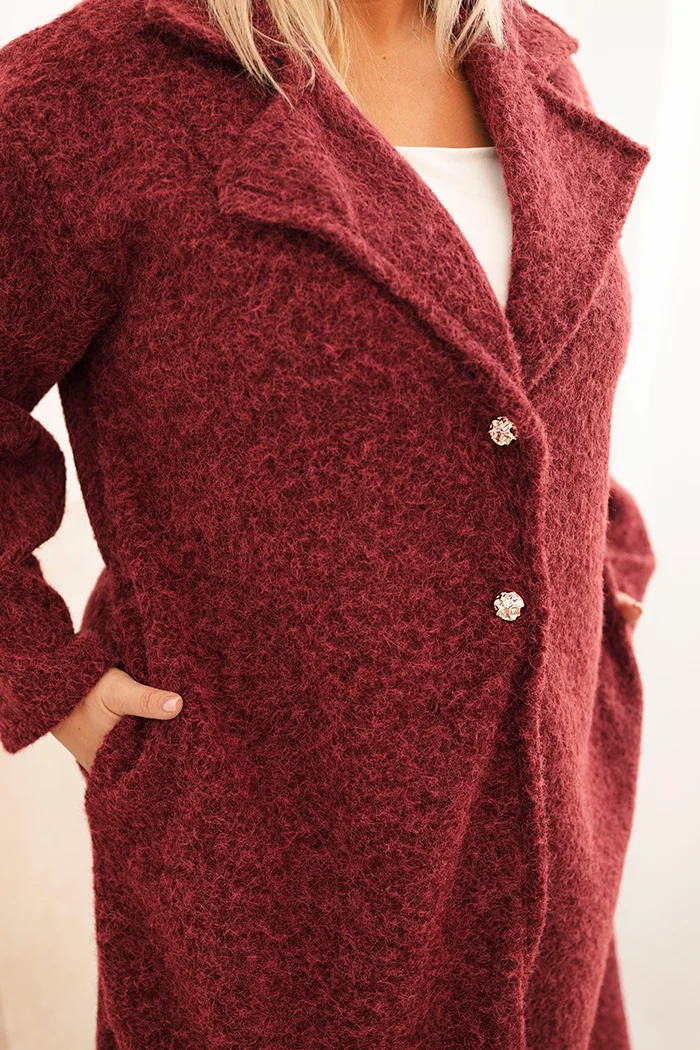 Płaszcz damski Plus Size z wełną i dużym kołnierzem bordowy