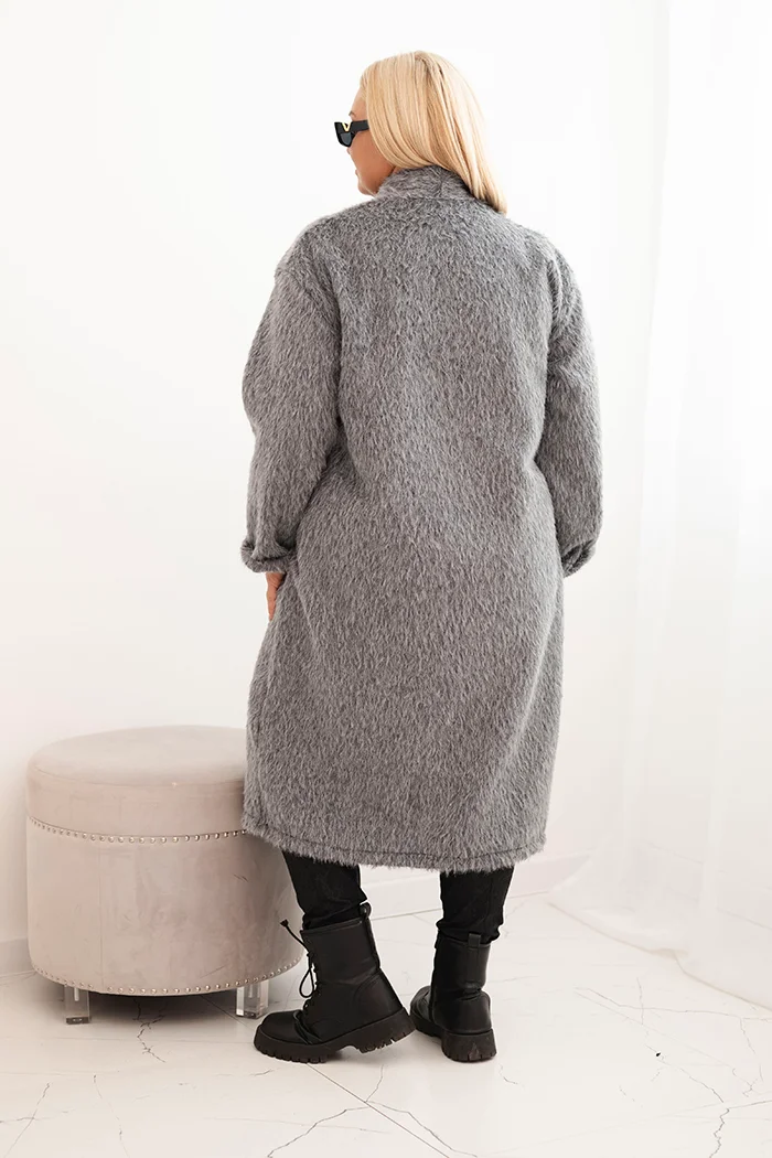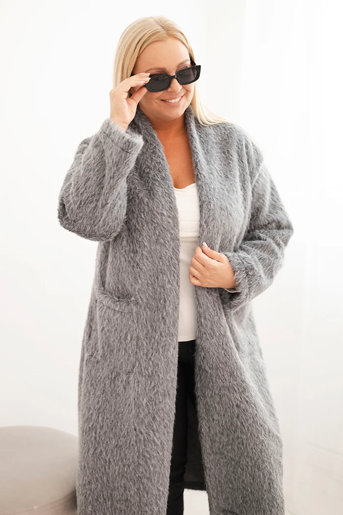 Płaszcz damski Plus Size z wiskozy bez zapięcia z kieszeniami szary