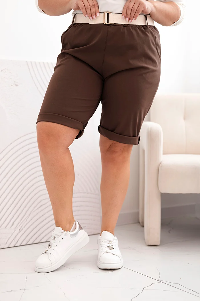 Spodenki damskie bawełniane Plus Size z paskiem ciemno beżowe