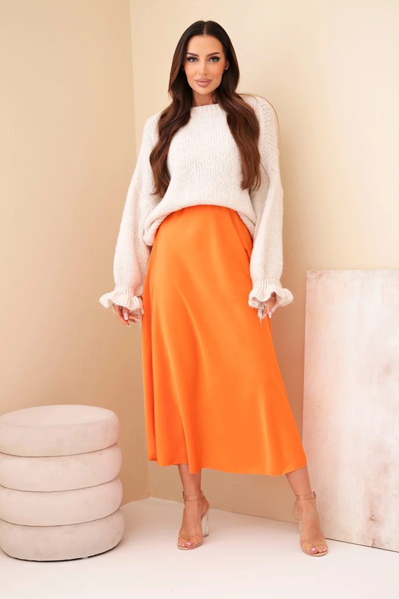 Spódnica damska wiskozowa rozkloszowana pomarańczowa