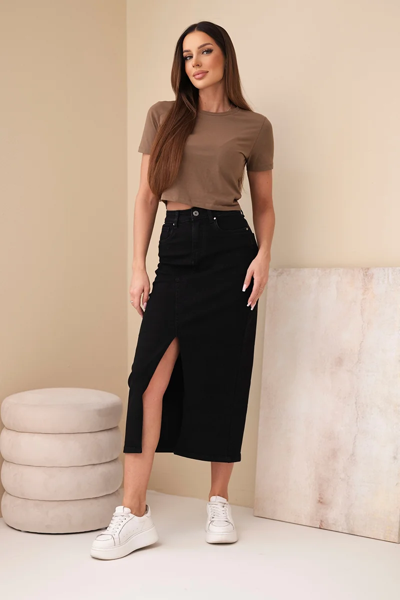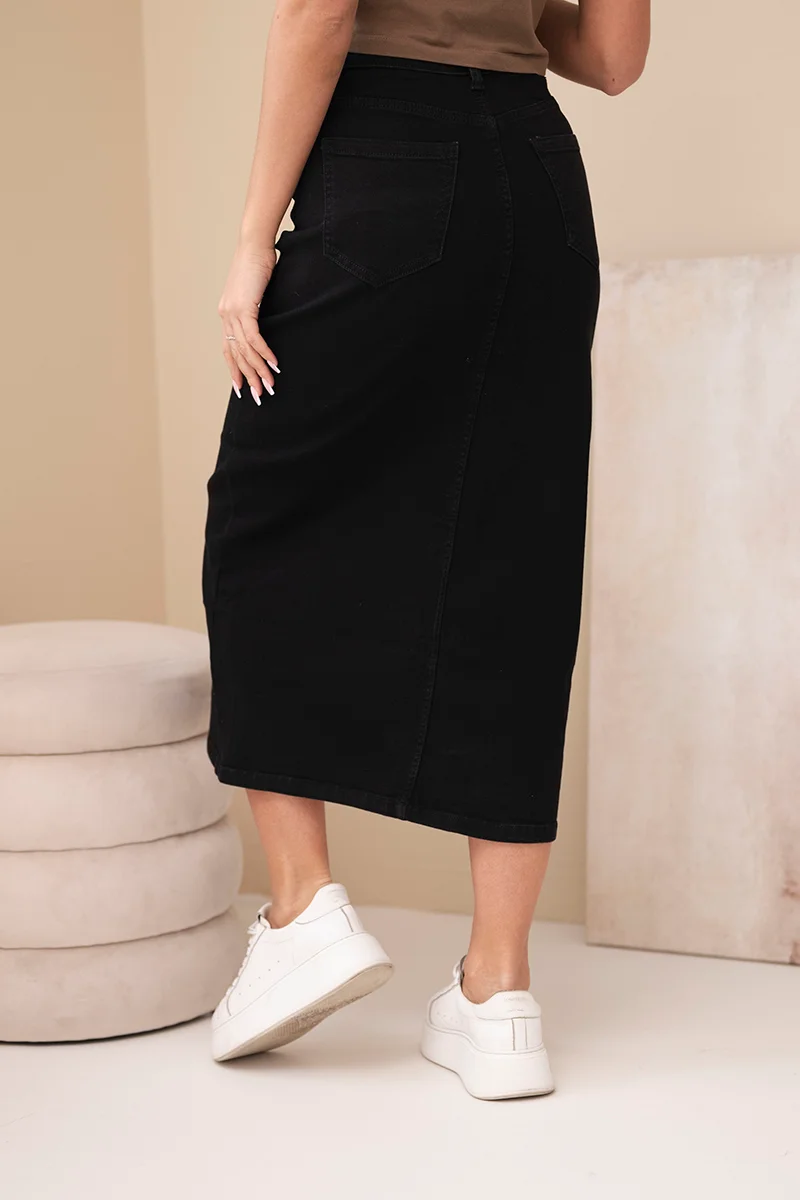 Spódnica jeansowa damska midi z wysokim stanem