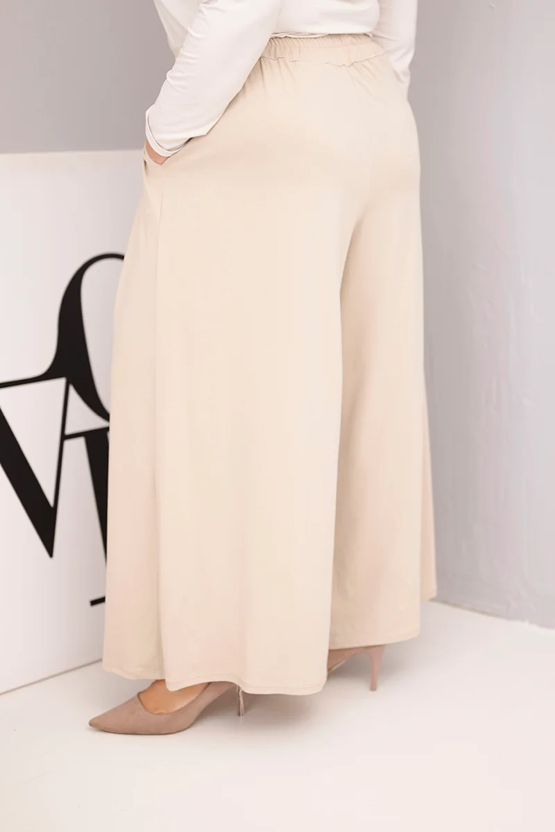 Spodnie damskie bawełniane Plus Size o luźnym kroju z wysokim stanem ecru