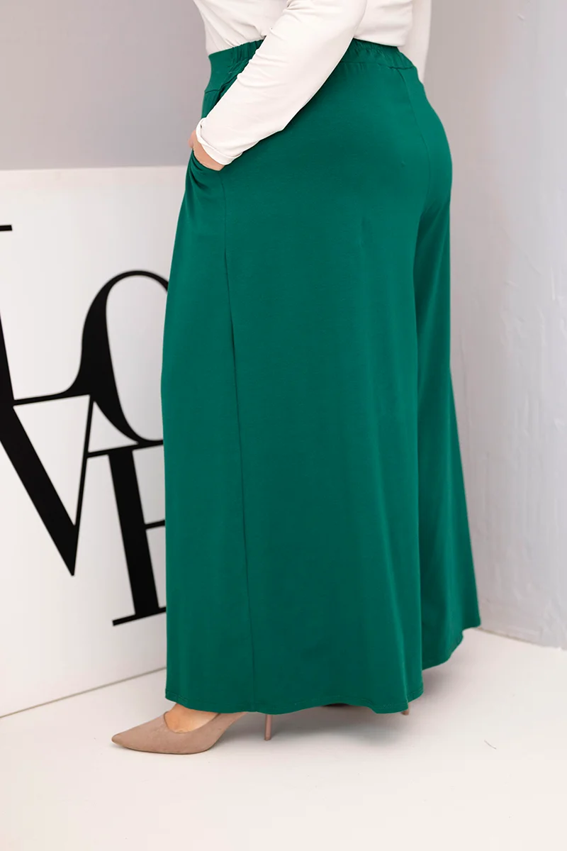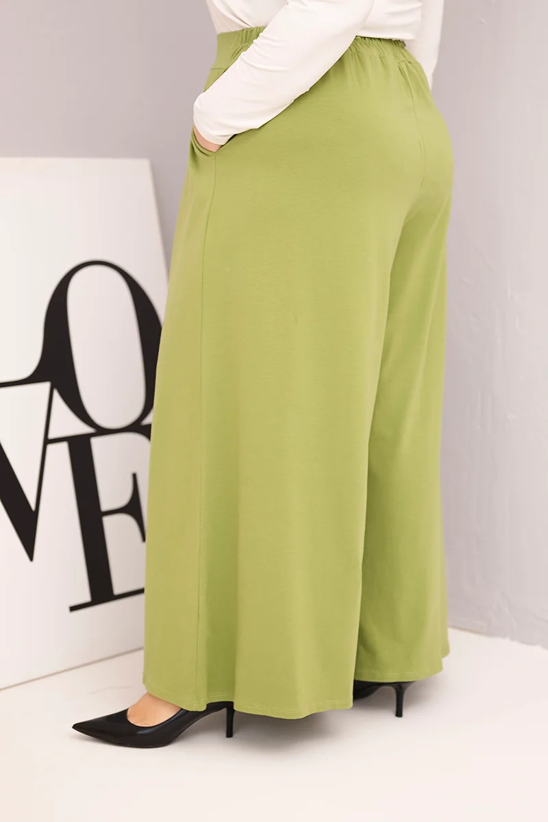 Spodnie damskie bawełniane Plus Size o szerokiej nogawce i luźnym kroju pistacjowe