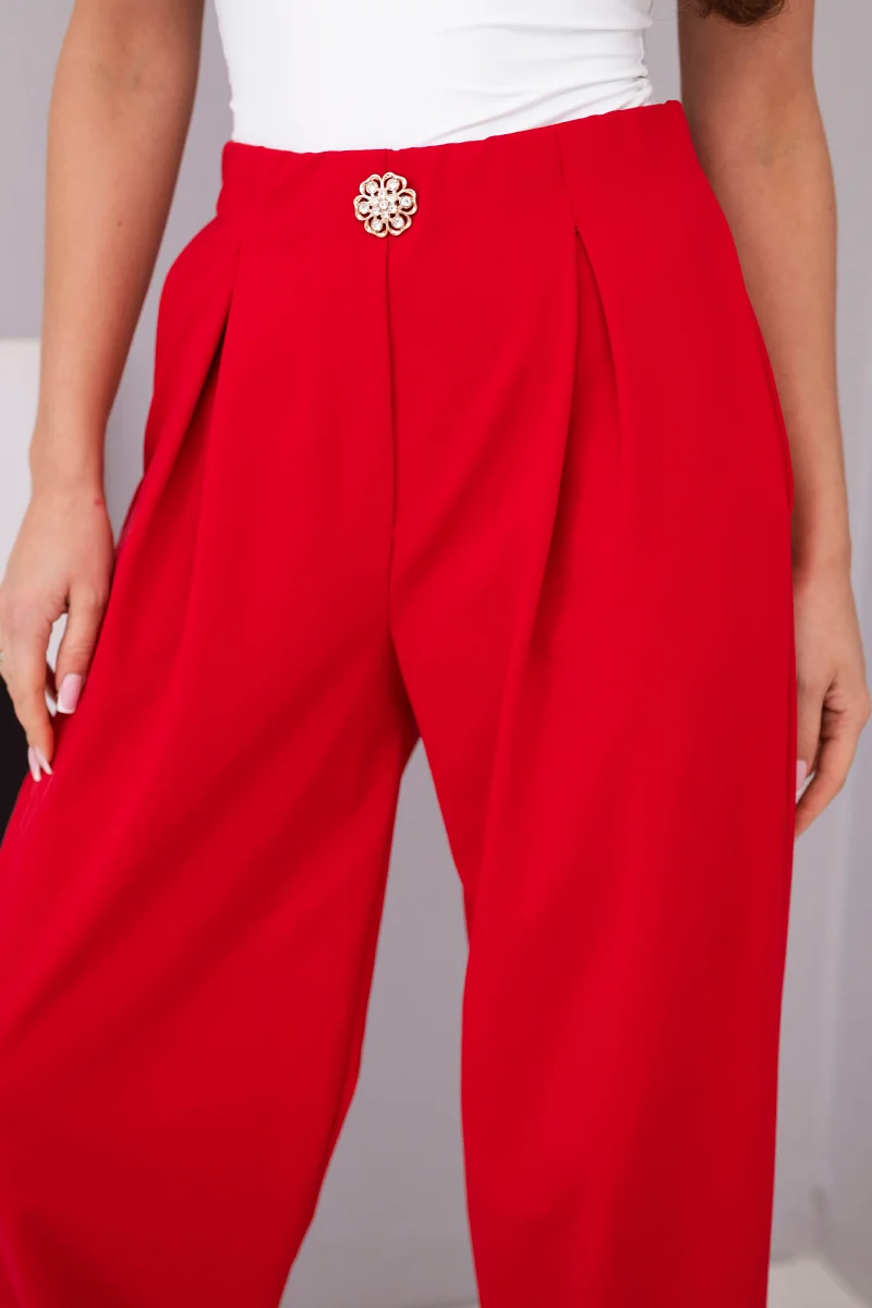 Spodnie damskie bawełniane z wysokim stanem i ozdobnym guzikiem czerwone