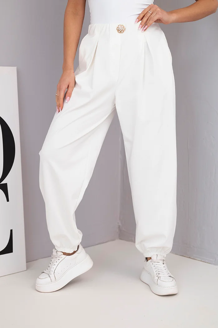 Spodnie damskie bawełniane z wysokim stanem i paskiem beżowa
