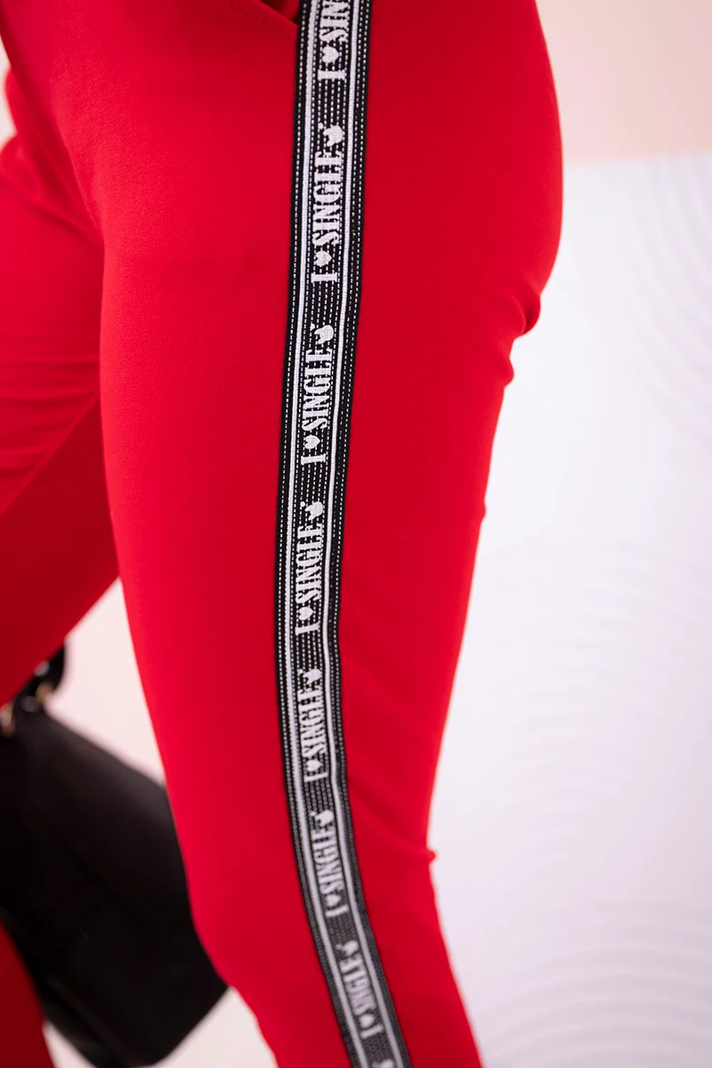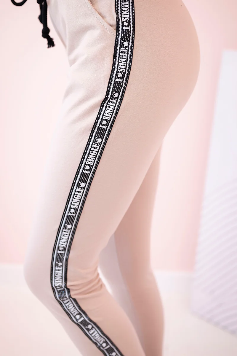 Spodnie damskie dresowe z lampasem i wiązaniem w pasie czarne